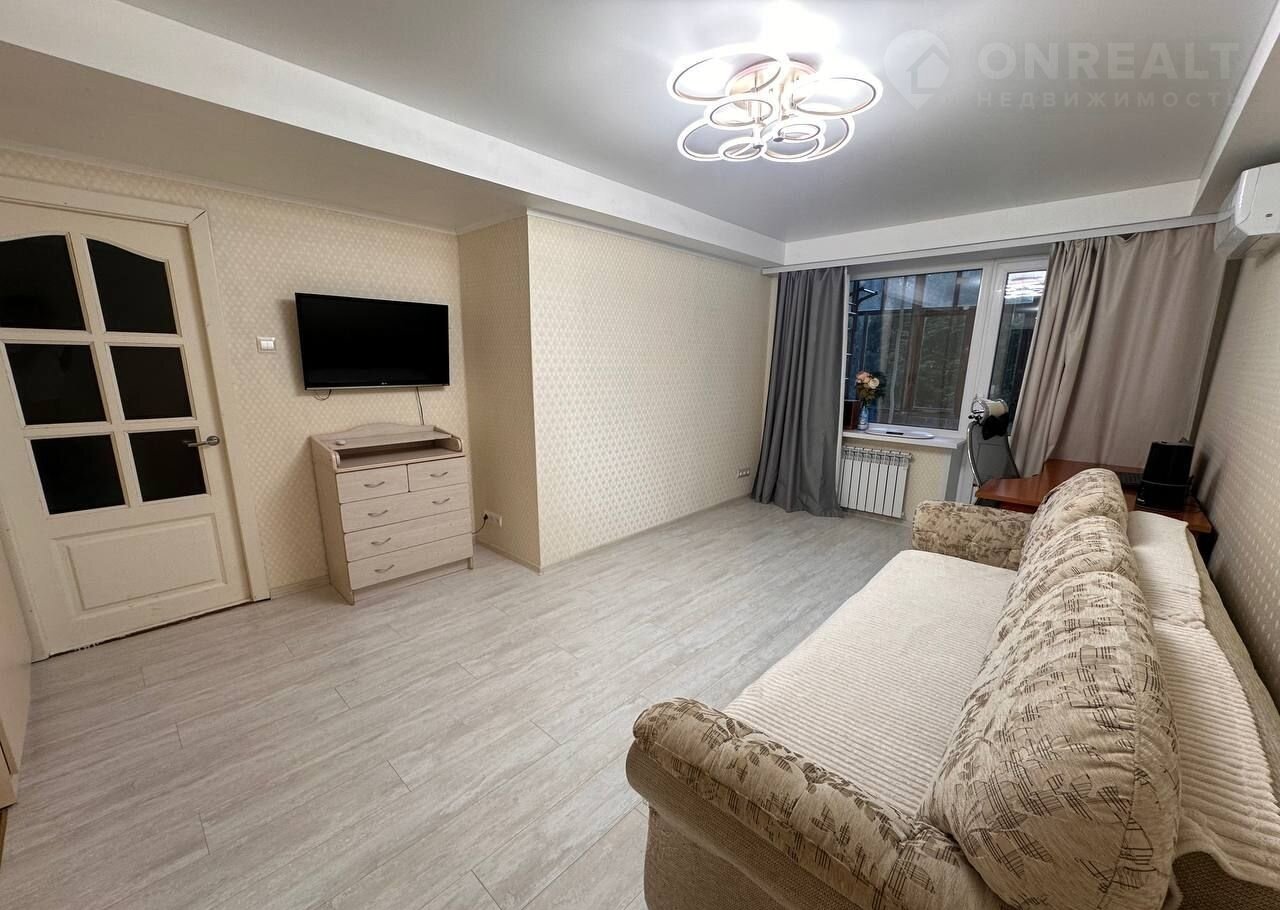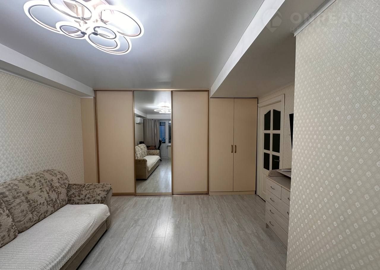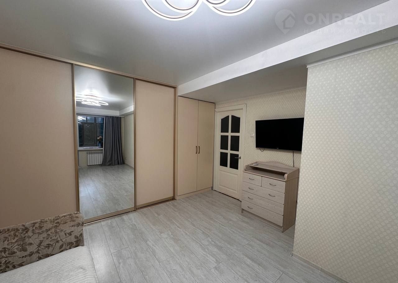 Большая комната 19.9 кв.м., шкаф – купе по всей стене (помещаются вещи для всей семьи), кондиционер качественный (тоже готовы оставить в подарок). Ремонт со вкусом, шторы и карнизы готовы оставить и в комнате, и на кухне. Из комнаты выход на балкон.