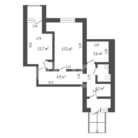 Общая площадь 53.4 м2