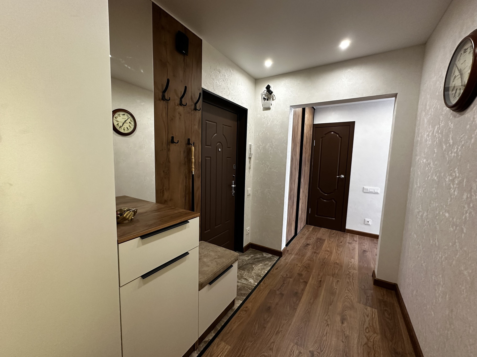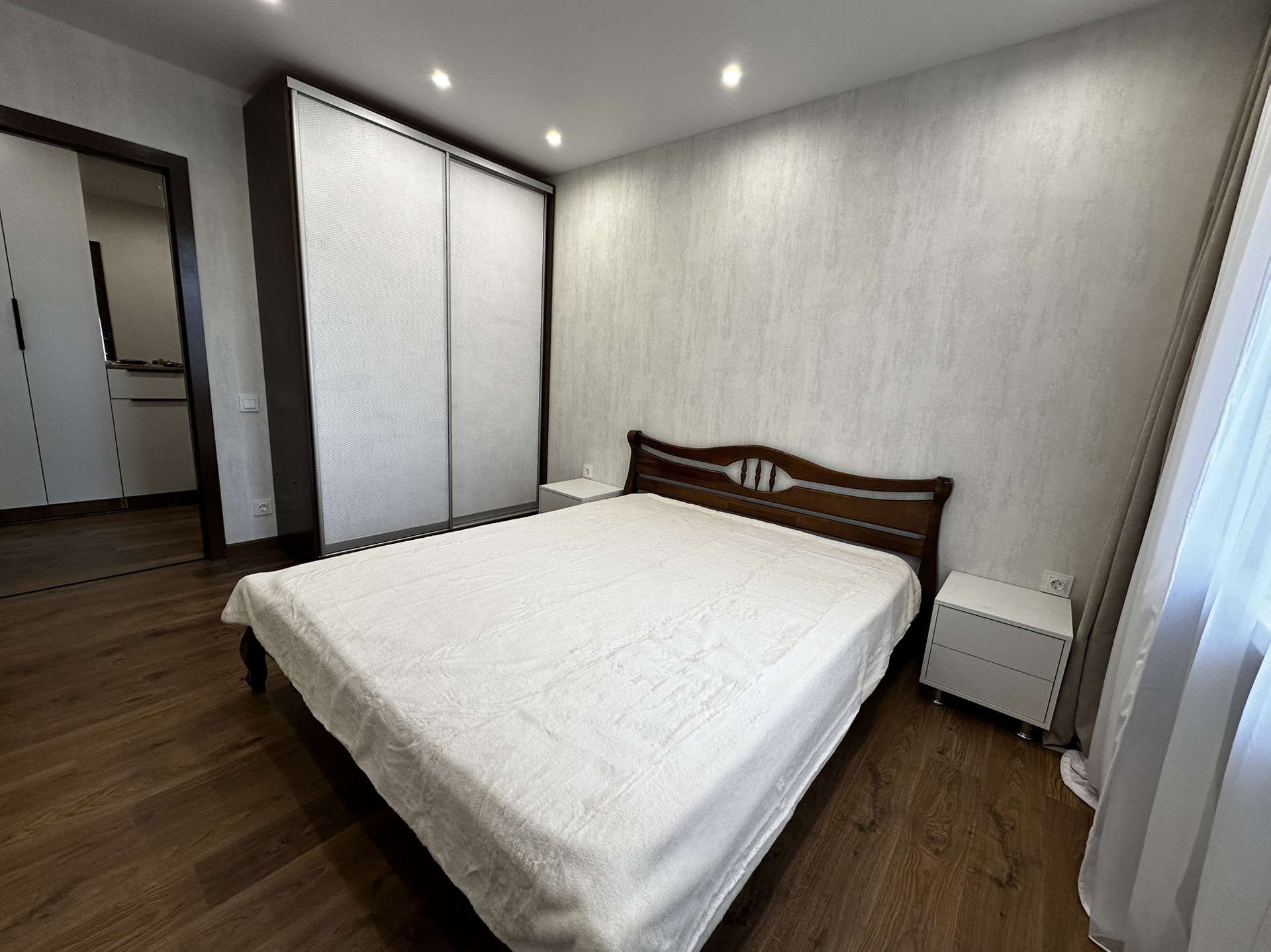 Двуспальная кровать и диван с спальным местом. Много мест для удобства ранения.