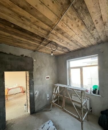 Второй дом имеет размер 8 на 8 метров, его площадь составляет 106 квадратных метров. Стены дома выполнены из пеплоблока. Внутри дома выполнена разводка труб водоснабжения диаметром 32 мм, электричество проведено по всем стандартам, а газ подведен к границе участка. Дом имеет два этажа.