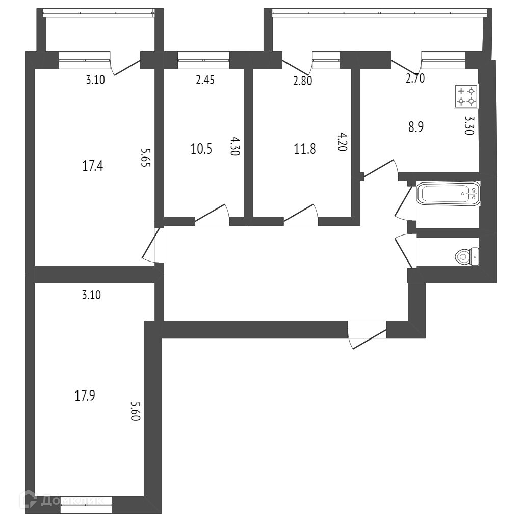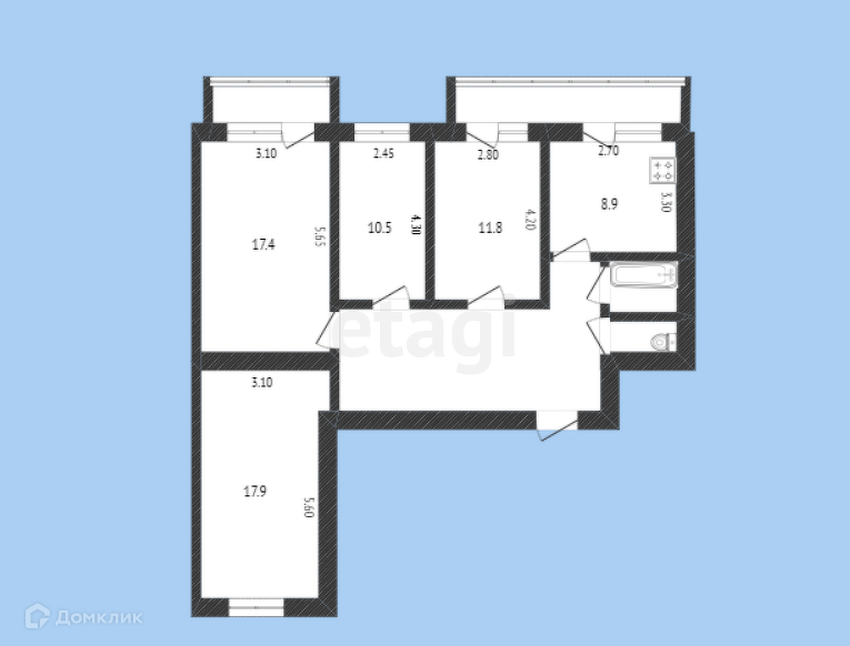 Общая площадь 88.5 м2