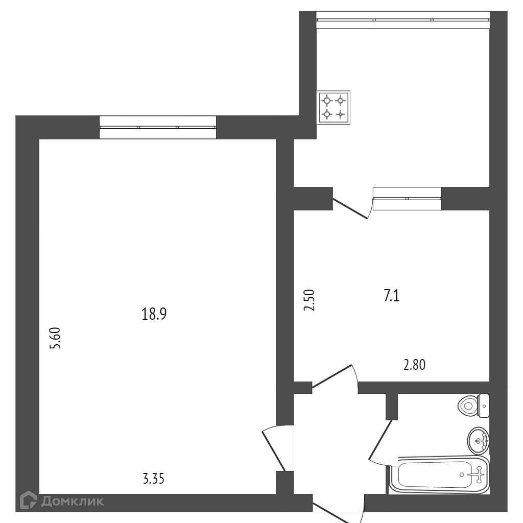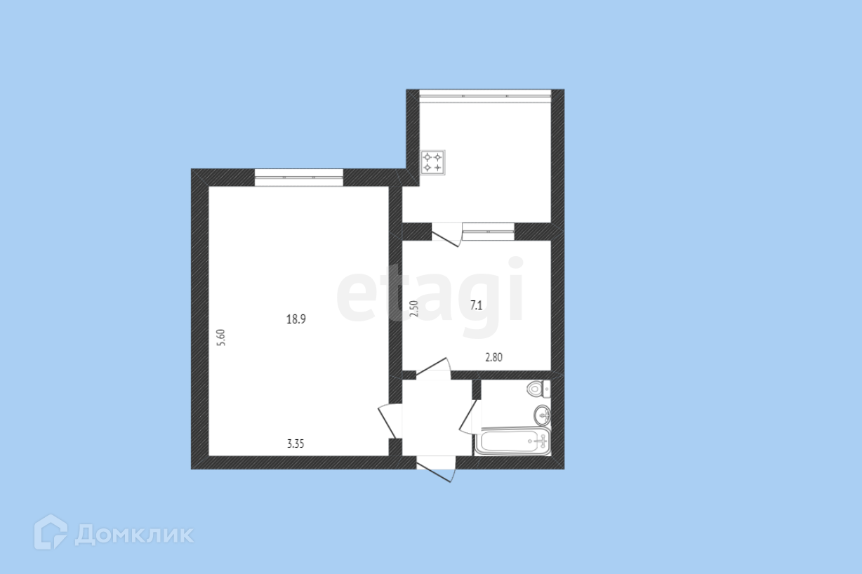 Общая площадь 35.8 м2