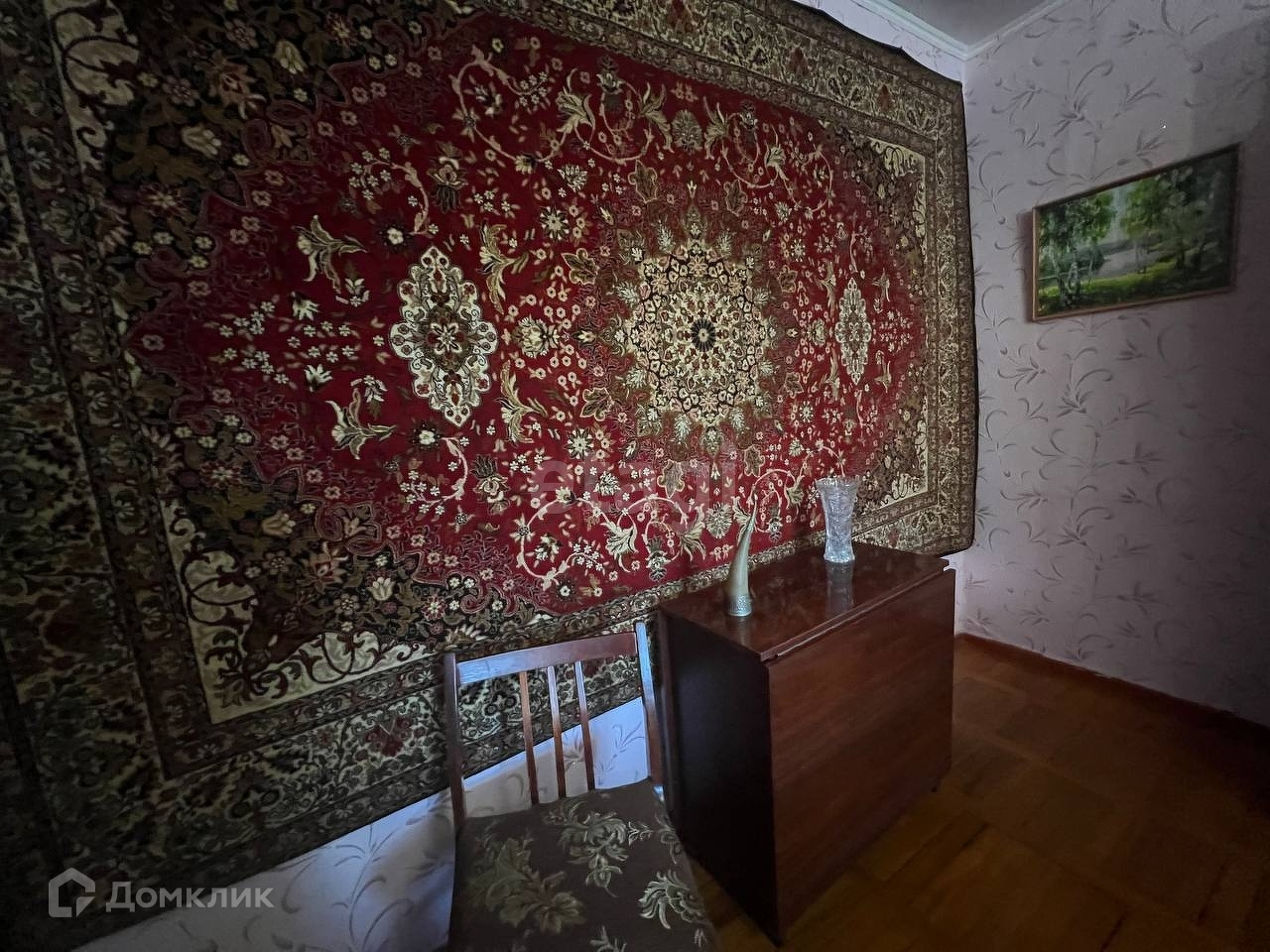 На полу паркетная доска.