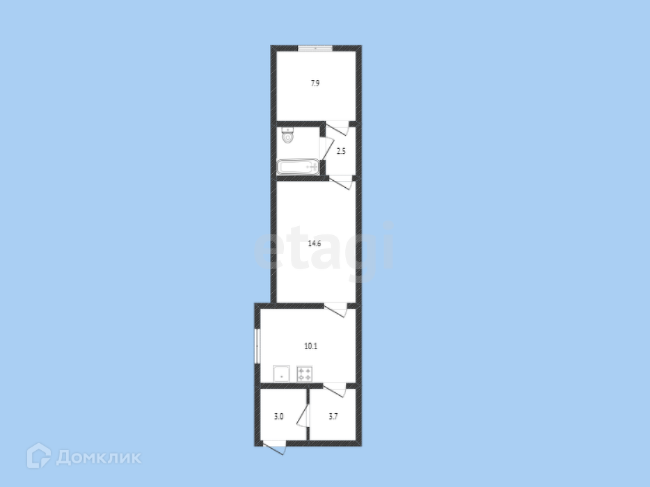 Общая площадь 51 м2