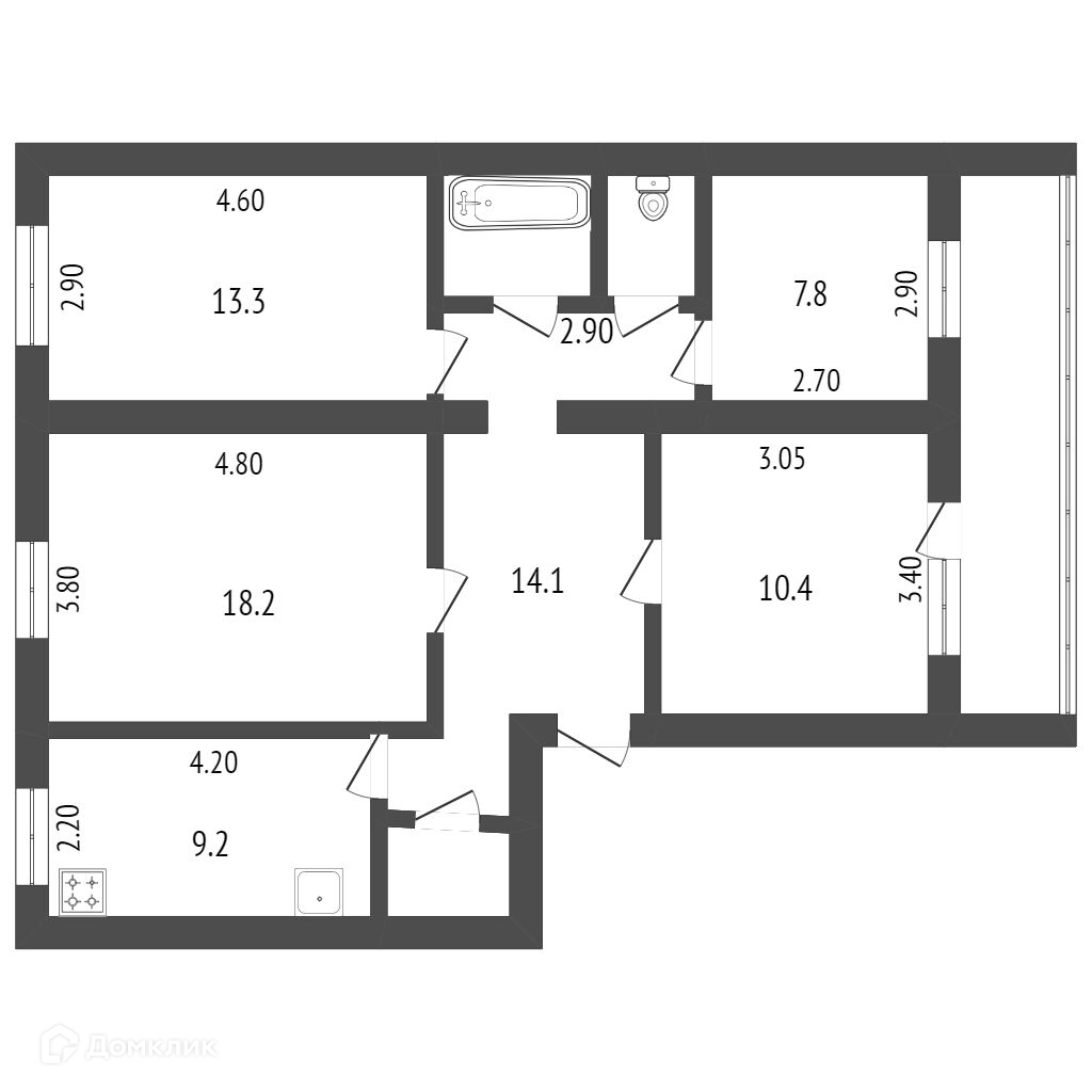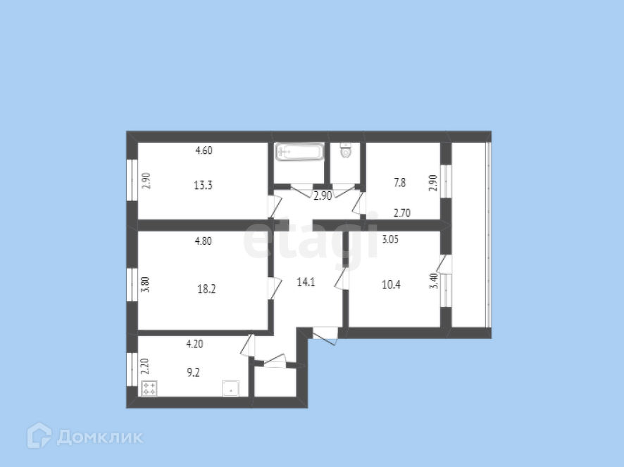 Общая площадь 80.7 м2