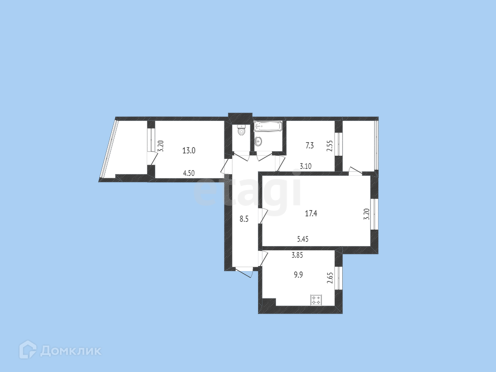 Общая площадь 59.7 м2
