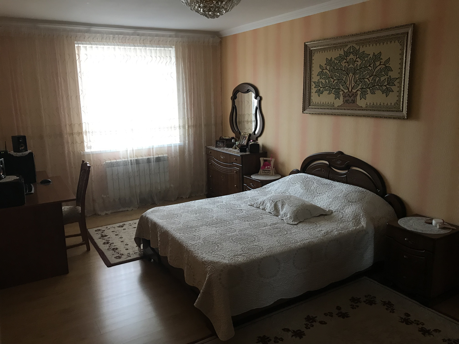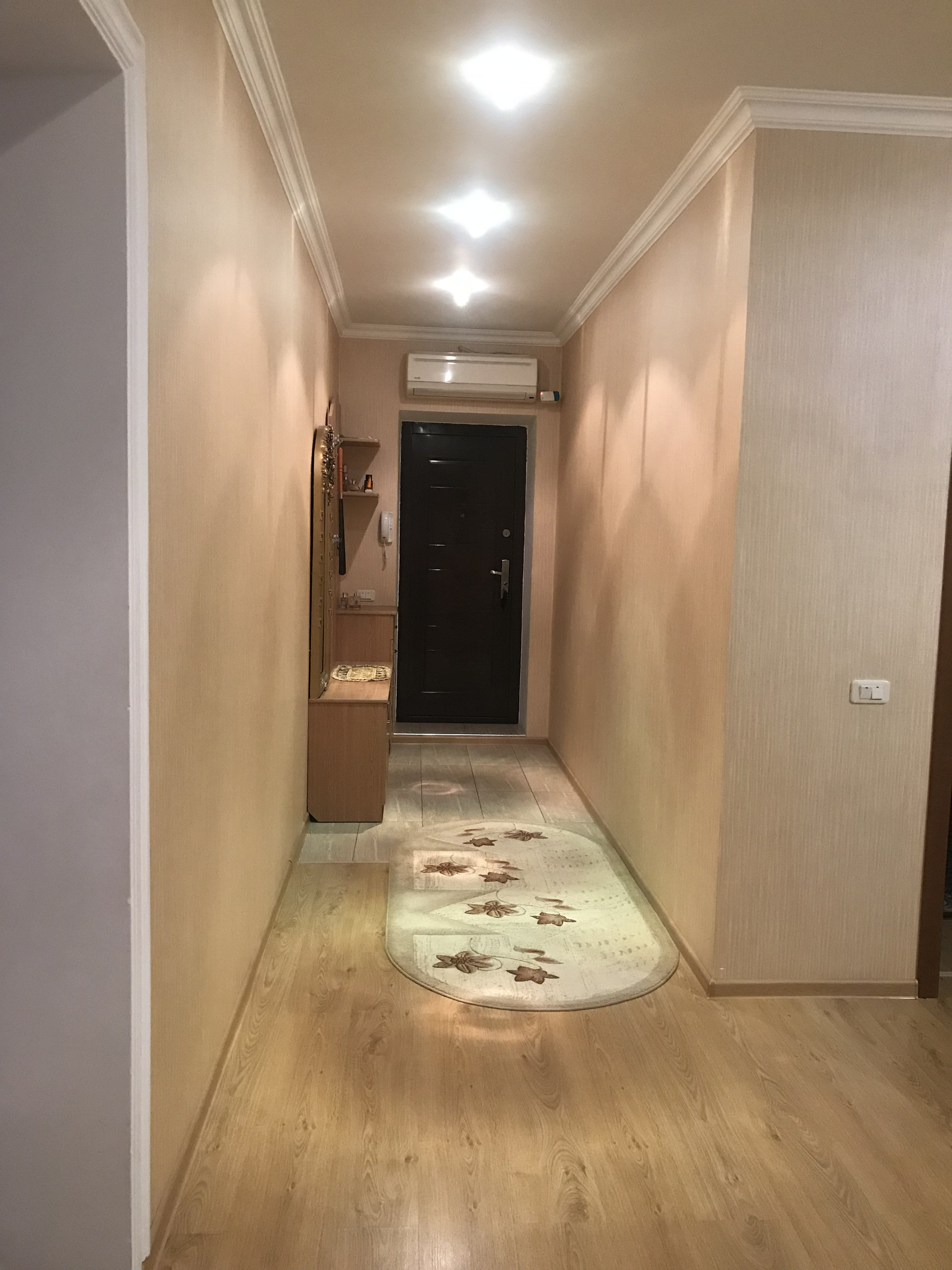 Уютная светлая квартира в спальном районе. Квартира в отличном состоянии (евроремонт).  Комнаты раздельные, просторный холл-гостиная и три спальни, удобная гардеробная.   В доме индивидуальное отопление. Есть  техэтаж.  В шаговой доступности школы, детсад, все необходимые магазины, остановки общественного транспорта и др.  Покупателю остается встроенная кухонная мебель.