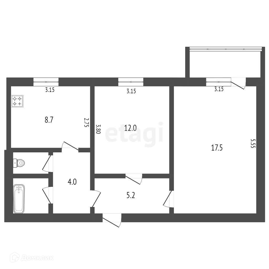 2-комнатная квартира, 51.1 м2, этаж 3 / 10, на продажу в Черкесске, Октябрьская улица, 354