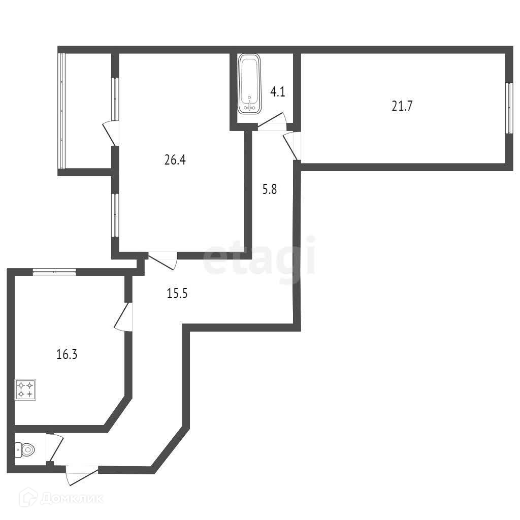 2-комнатная квартира, 91.1 м2, этаж 1 / 14, на продажу в Черкесске, улица Космонавтов, 43Г