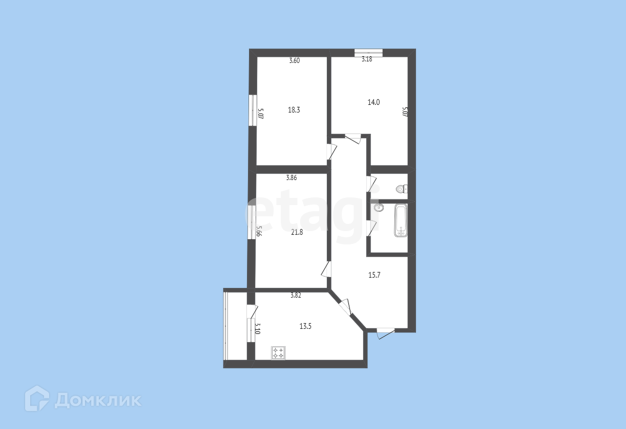 Срочно продаётся трёхкомнатная квартира общей площадью 88,6 кв.м