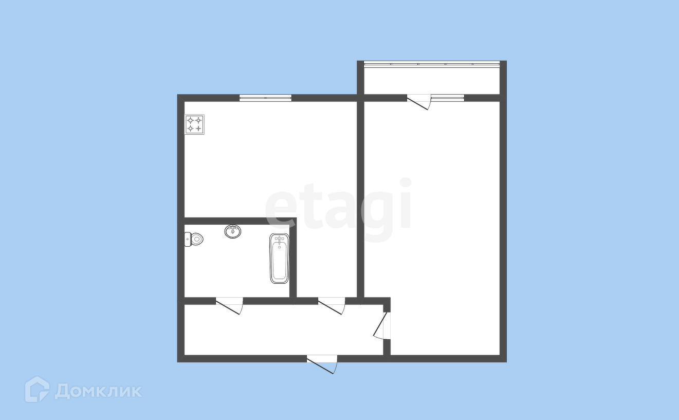 Общая площадь 44.3 м2