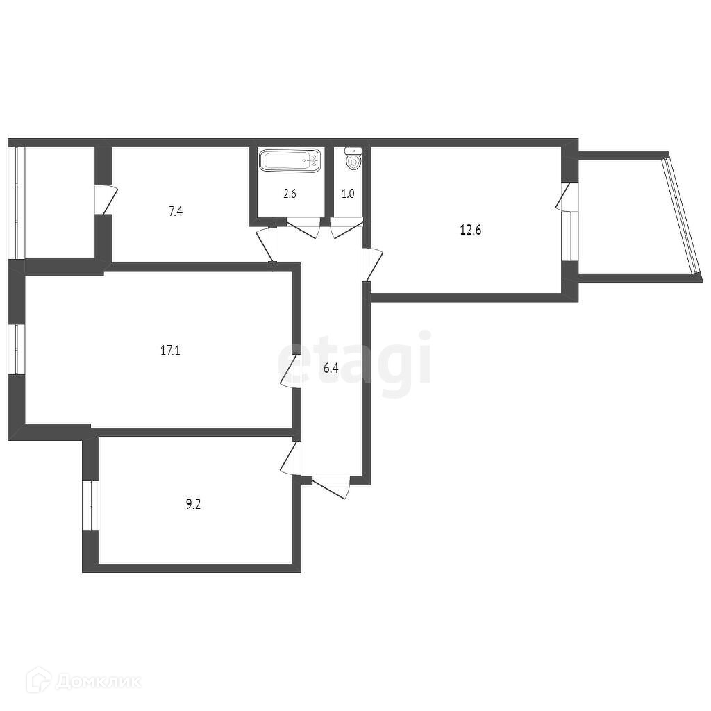 Общая площадь 58.4 м2