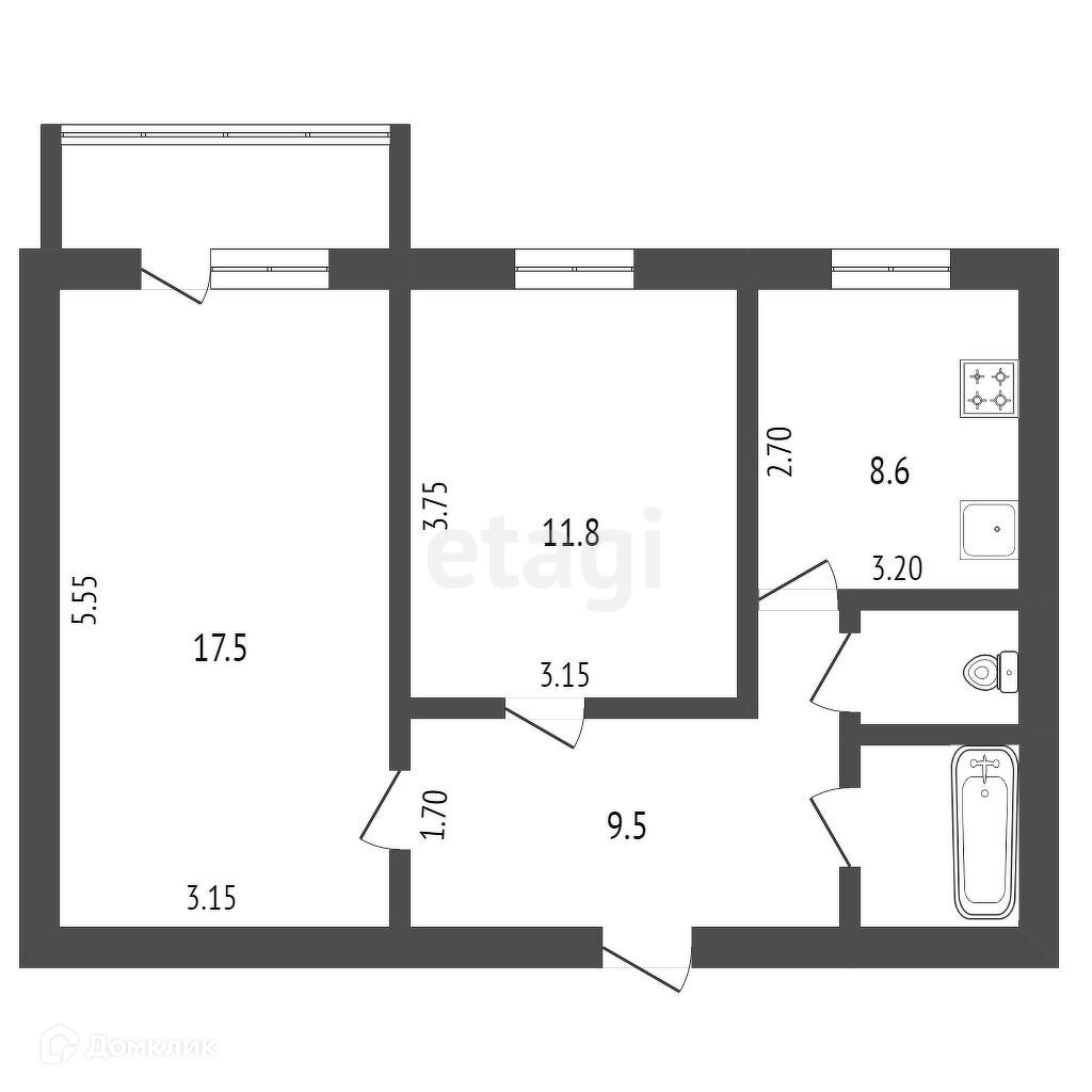 Балкон, лоджия 1 балкон