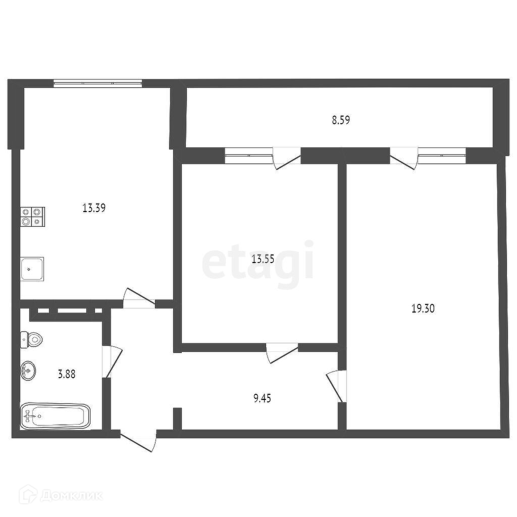 Общая площадь 69.3 м2
