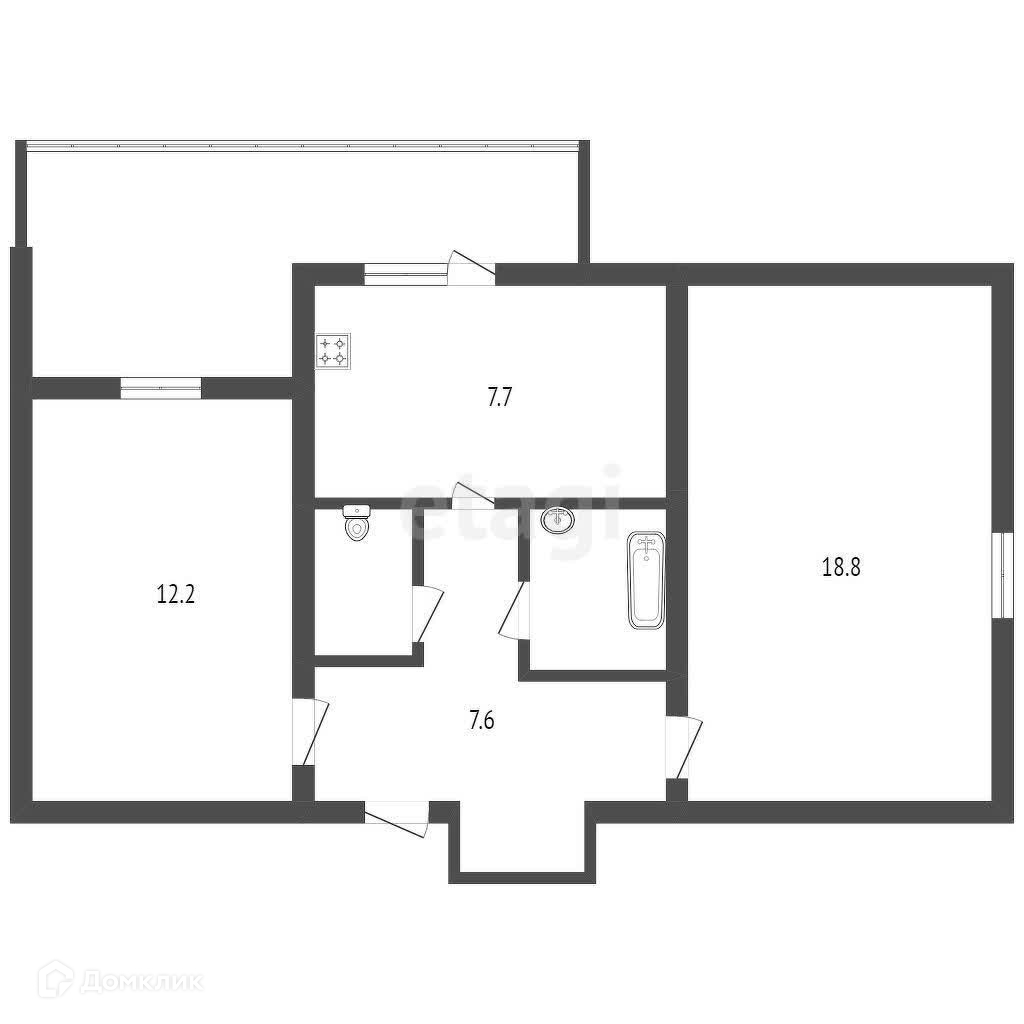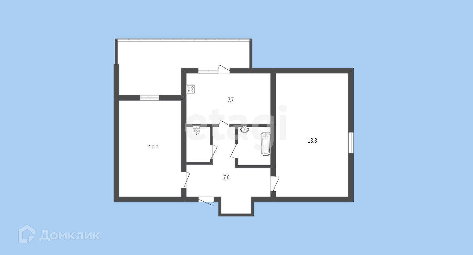 Общая площадь 50.8 м2