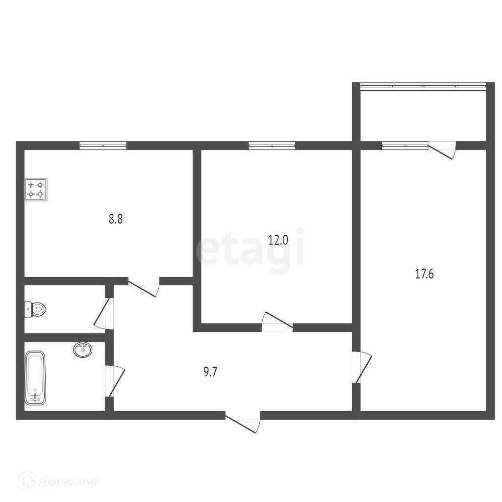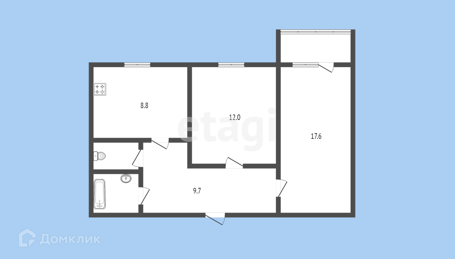 Общая площадь 51.7 м2