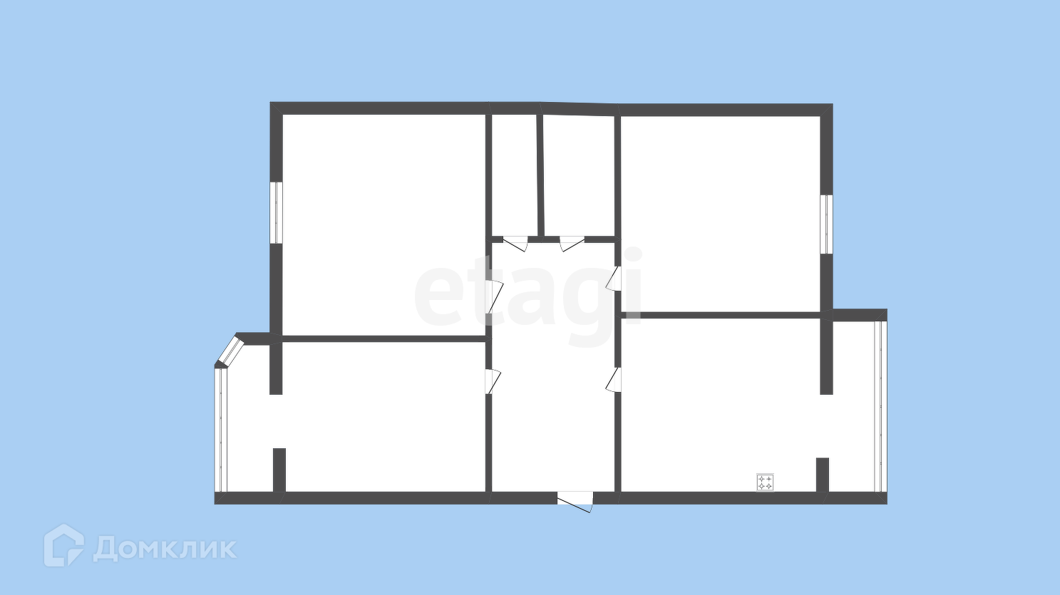 В квартире черновая отделка. Планировка удобная, комнаты светлые и просторные, установлены пластиковые окна с видом на двор и на улицу Октябрьскую, имеется два балкона, санузел раздельный.