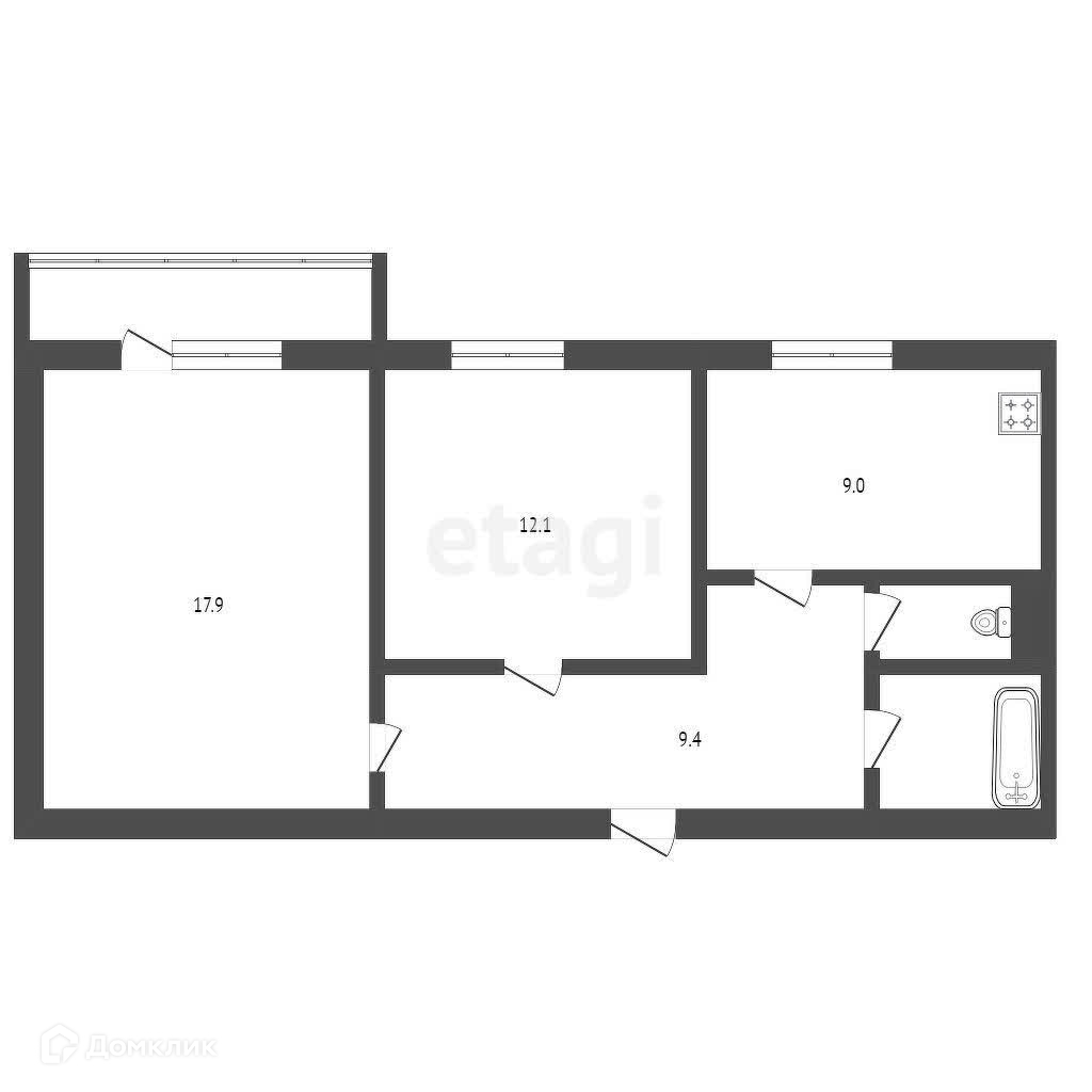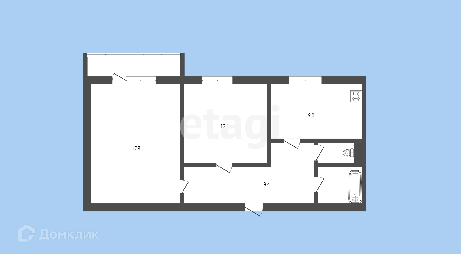 Общая площадь 52.1 м2