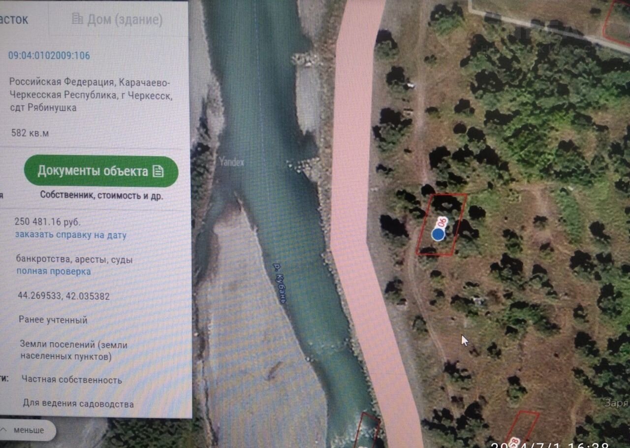 Продается земельный участок ст Рябинушка, возле реки Кубань. Земля в собственности, документы оформлены, проведено межевание.