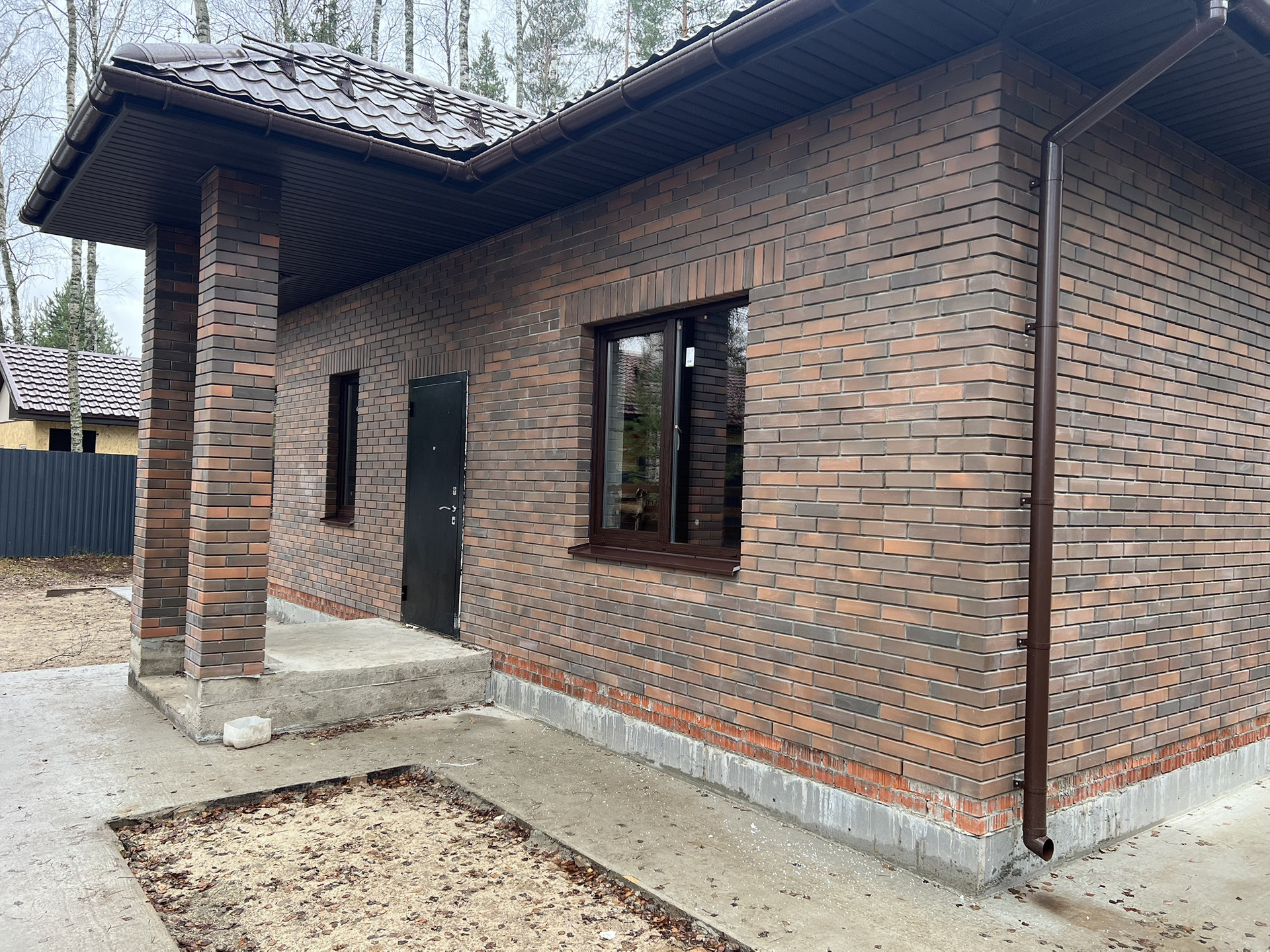 Сделана парковка на улице и на участке, отмостка, дорожки,огорожен забором.оштукатурен внутри, сделана электрика , выполнено утепление 100 эппс под стяжку.