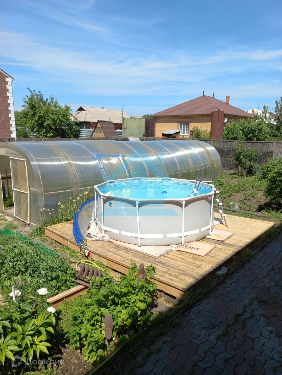 на участке : баня, мангальная зона ,кочегарка ,бассейн,теплица,беседка,плодоносящий сад (яблоки,абрикосы,груши,малина и т.д)