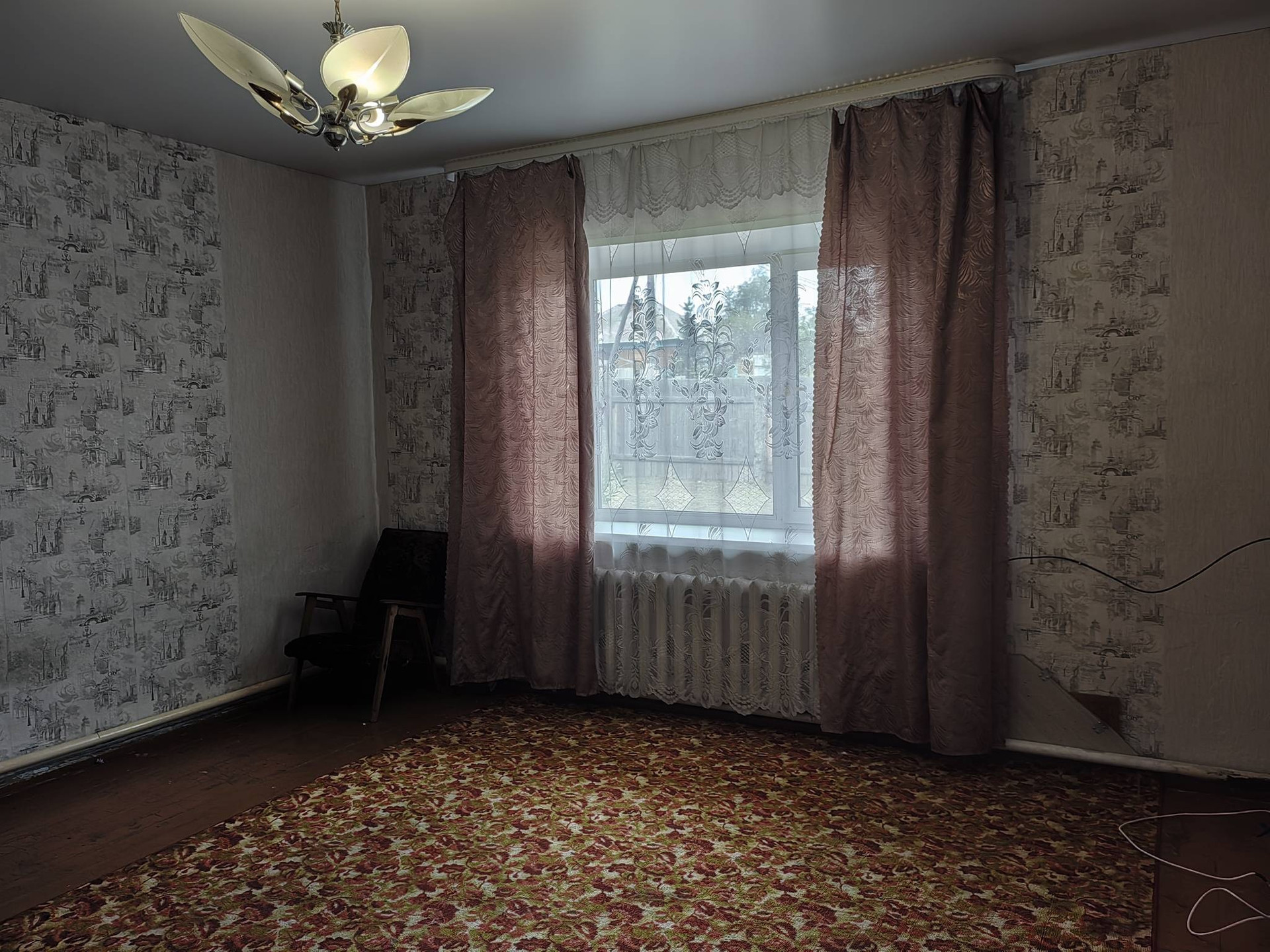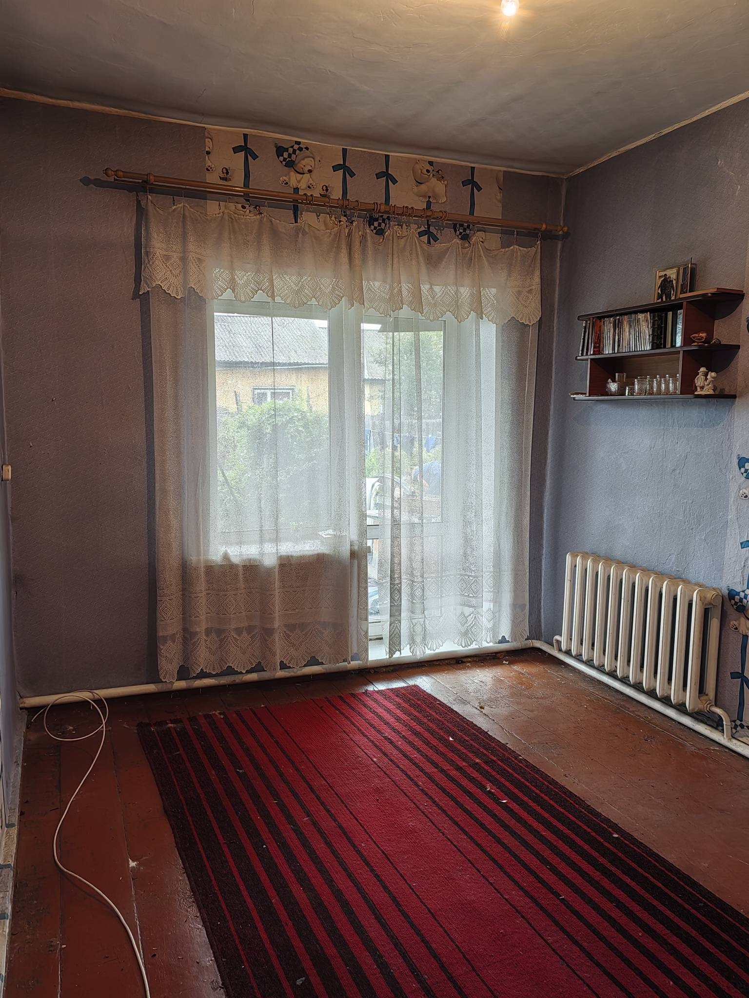 в квартире пластиковые окна, в одной комнате натяжной потолок,центральная канализация и холодная вода, отопление водяное. погреб, вольер, небольшой огород.