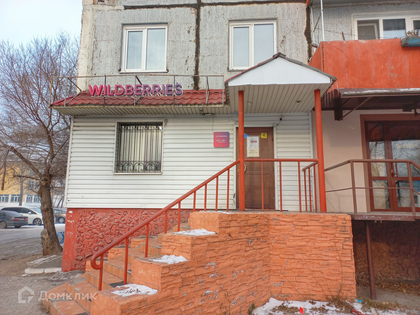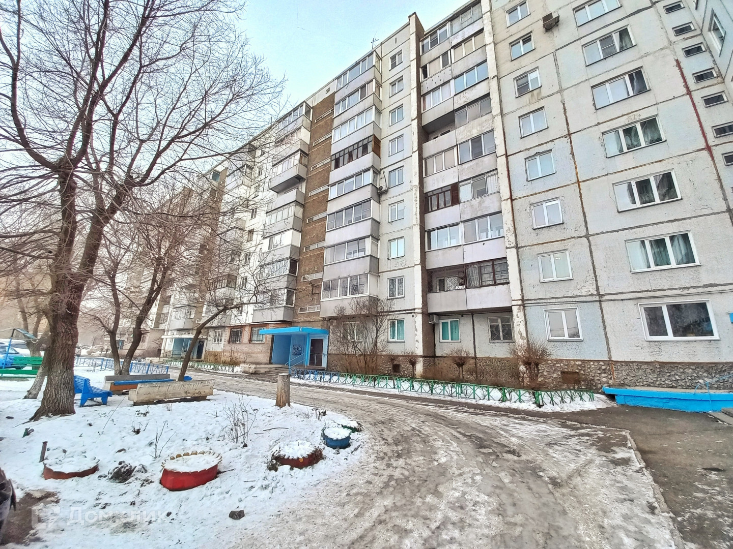 Окна выходят во двор и на улицу.