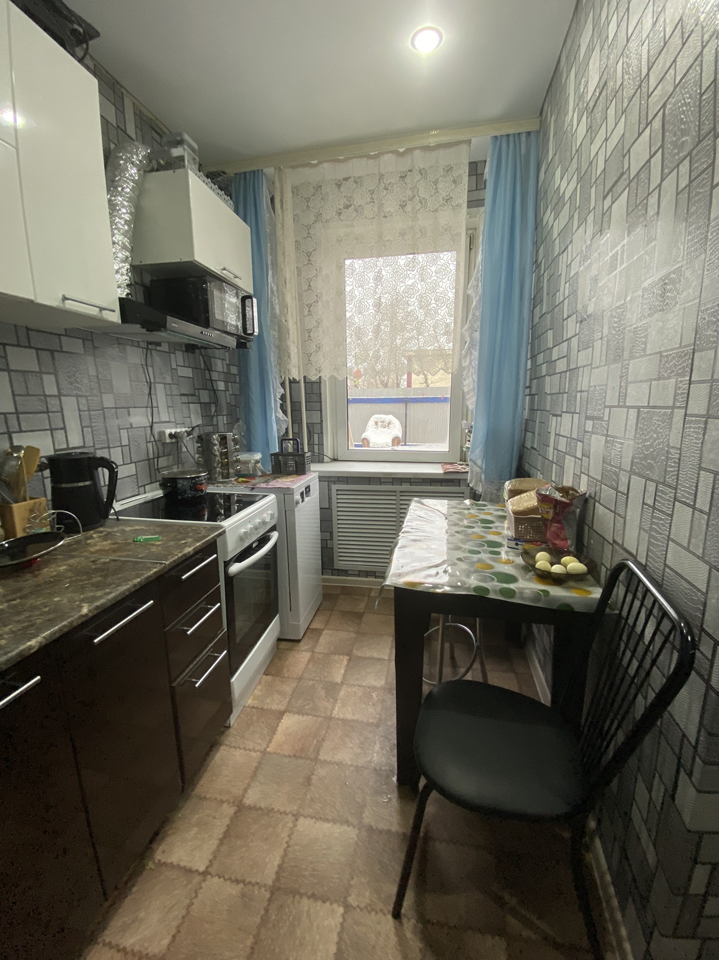В квартире сделан косметический ремонт, натяжные потолки, на полу линолеум. Вытяжка и полотенцесушитель установлены новые. Заменена проводка.
