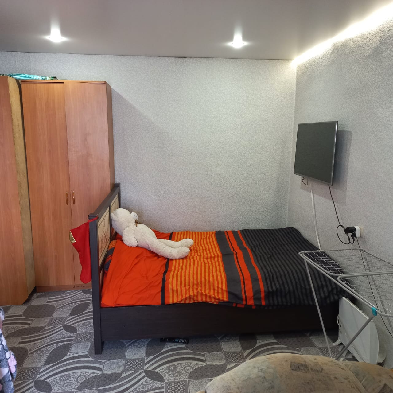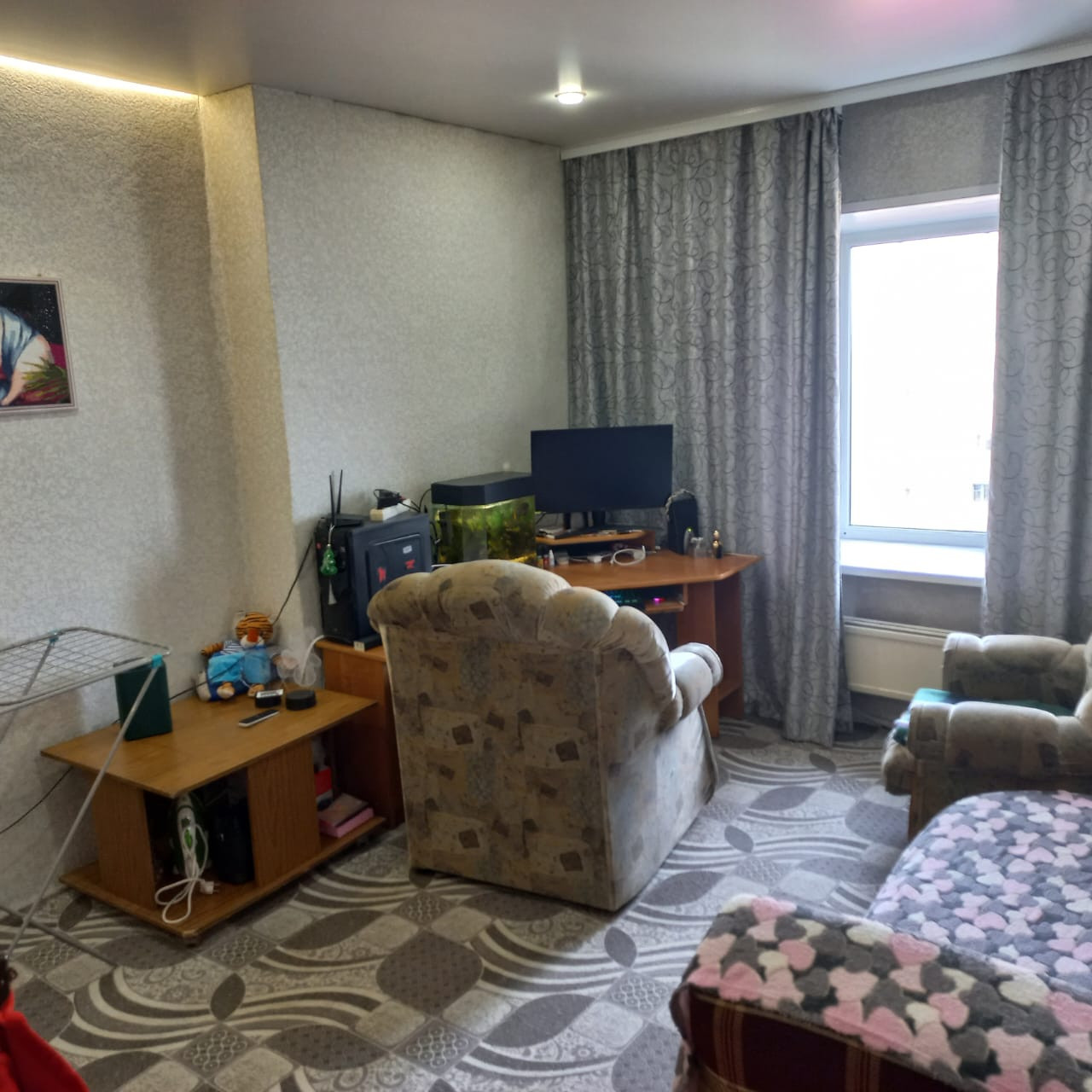 В квартире произведен косметический ремонт. Натяжные потолки, санузел в кафеле, окна ПВХ, хорошие межкомнатные двери.