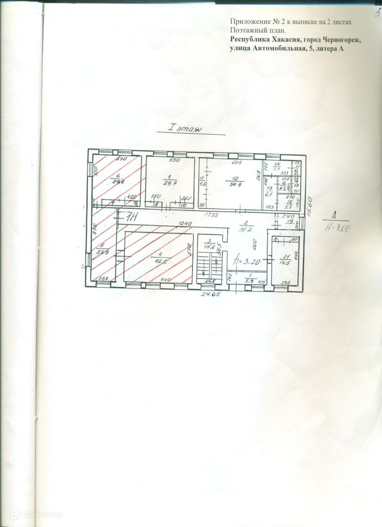 На первом этаже выделено помещение 1Н площадью 96,2 кв.м. (на фото плана 1 этажа заштриховано красным), здесь располагался продуктовый магазин.