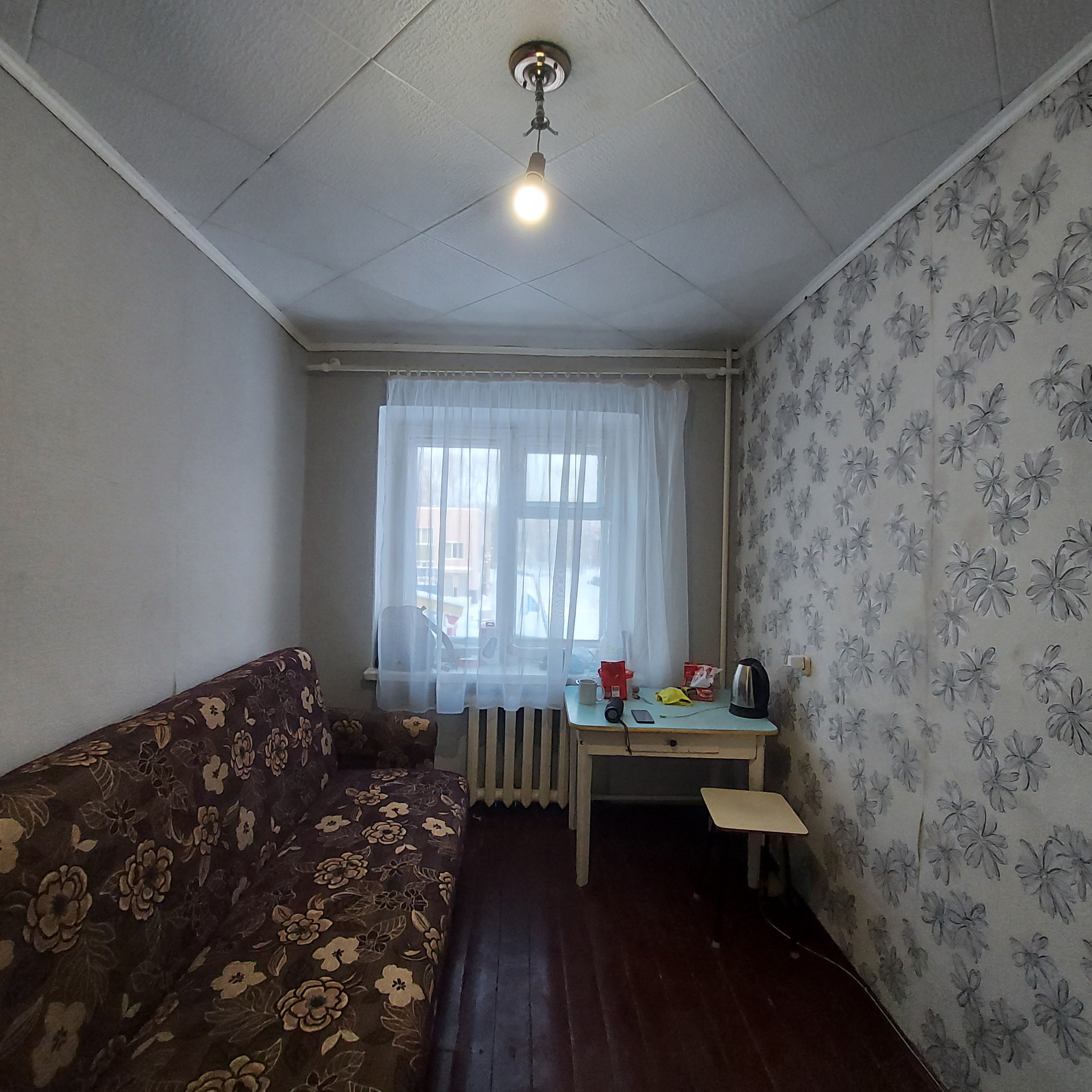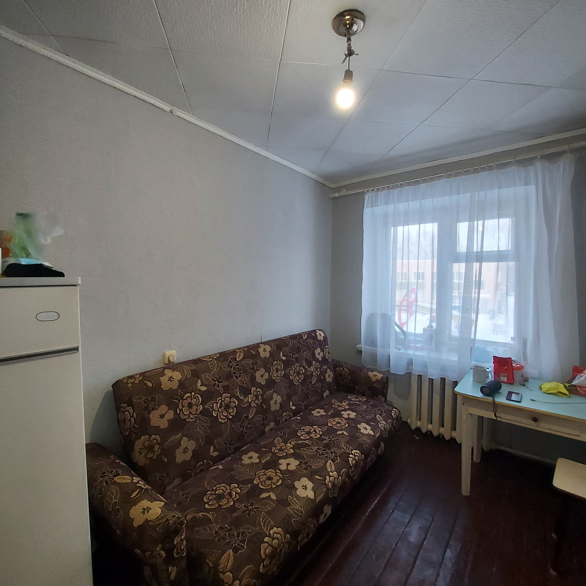 Продаётся комната  в центре города в общежитии "Строитель", S=9,5 кв.м., 3 этаж, состояние хорошее, комната теплая, есть возможность провести в комнату водоснабжение.