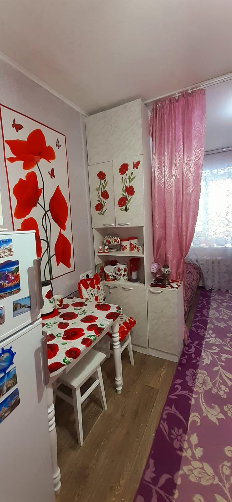 Новое пластиковое окно, свежий ремонт, натяжной потолок, на полу новый ламинат, хорошие обои.