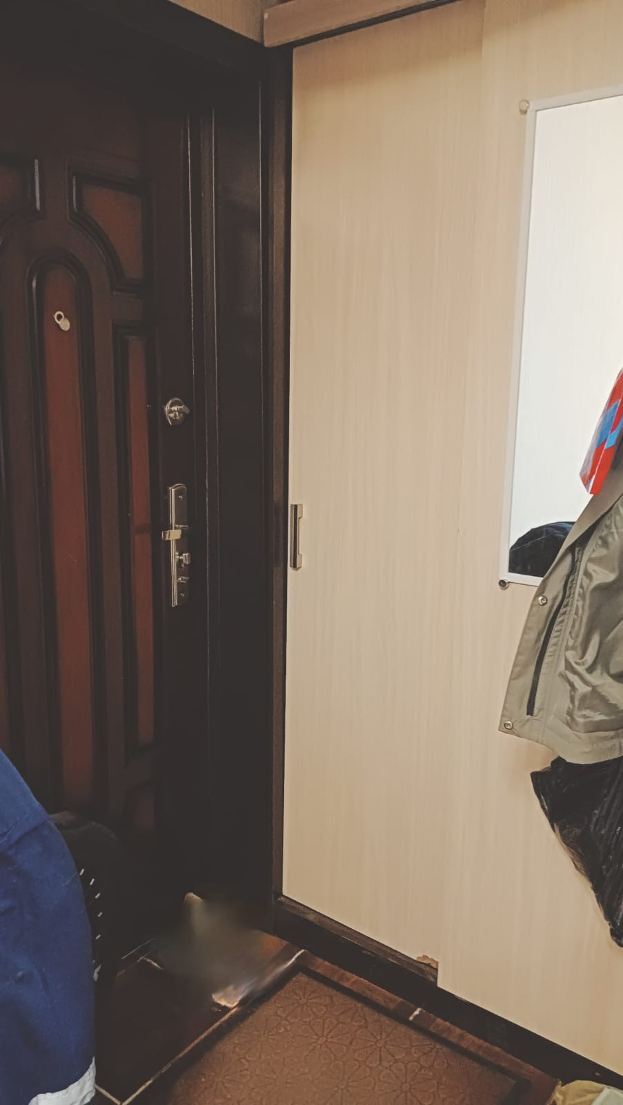 Комната очень теплая, батарея под всем подоконником,нигде не дует. Остаётся кух.гарнитур и шкаф купе в прихожей .