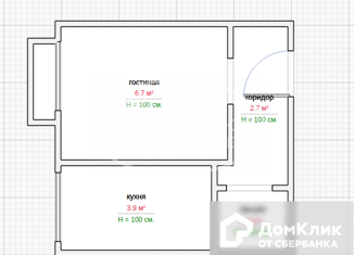 Общая площадь: 34.7 м2