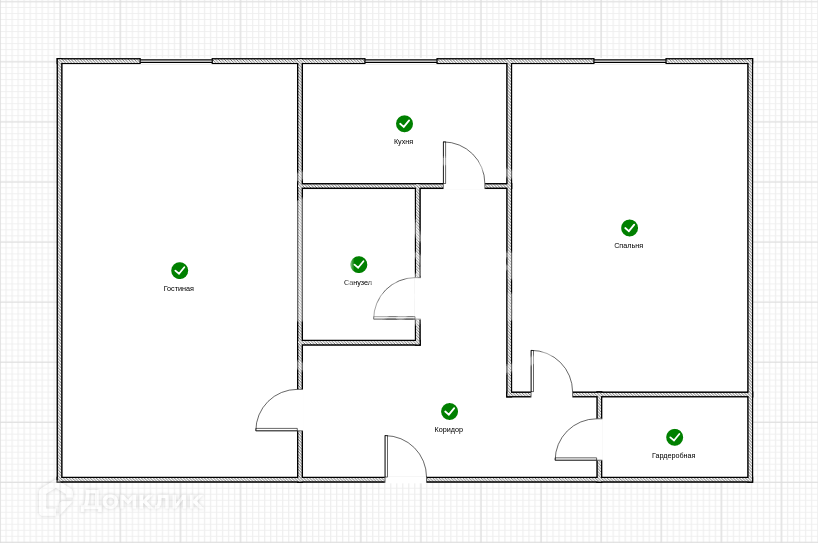 Общая площадь 43.6 м2