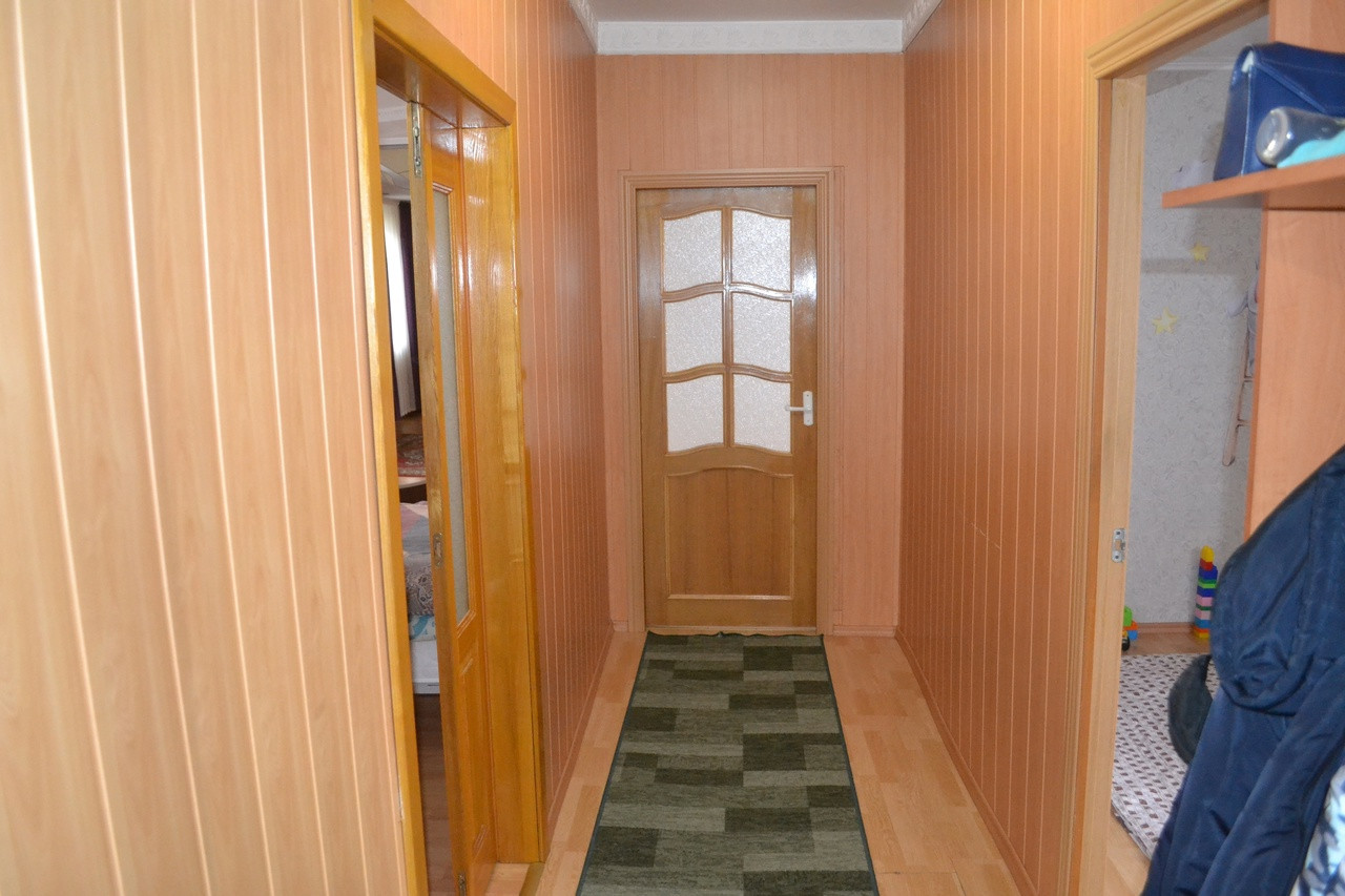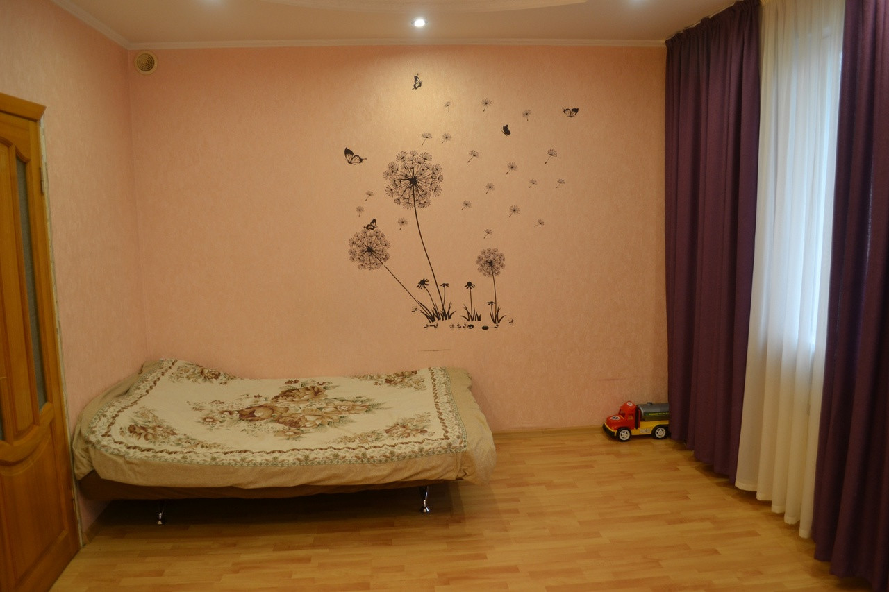 Прихожая, кухня-столовая (полы с подогревом), зал, спальня, детская. Все комнаты изолированные, окна выходят на разные стороны.