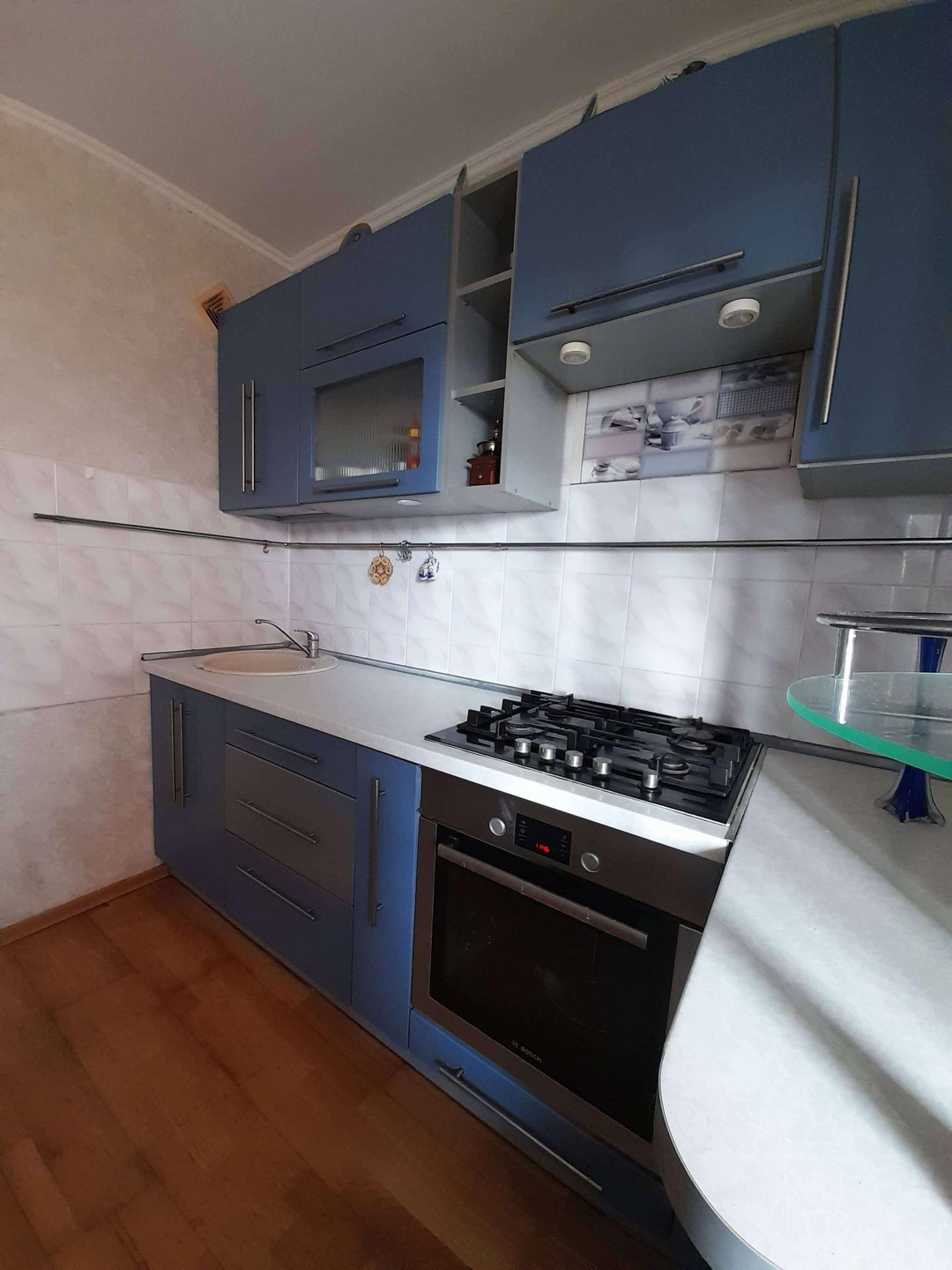 Кухня 8.1 кв. м. постелен паркет.