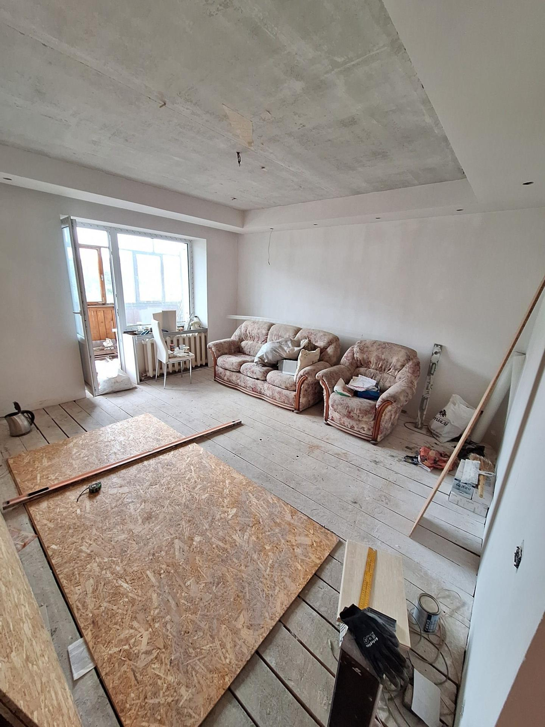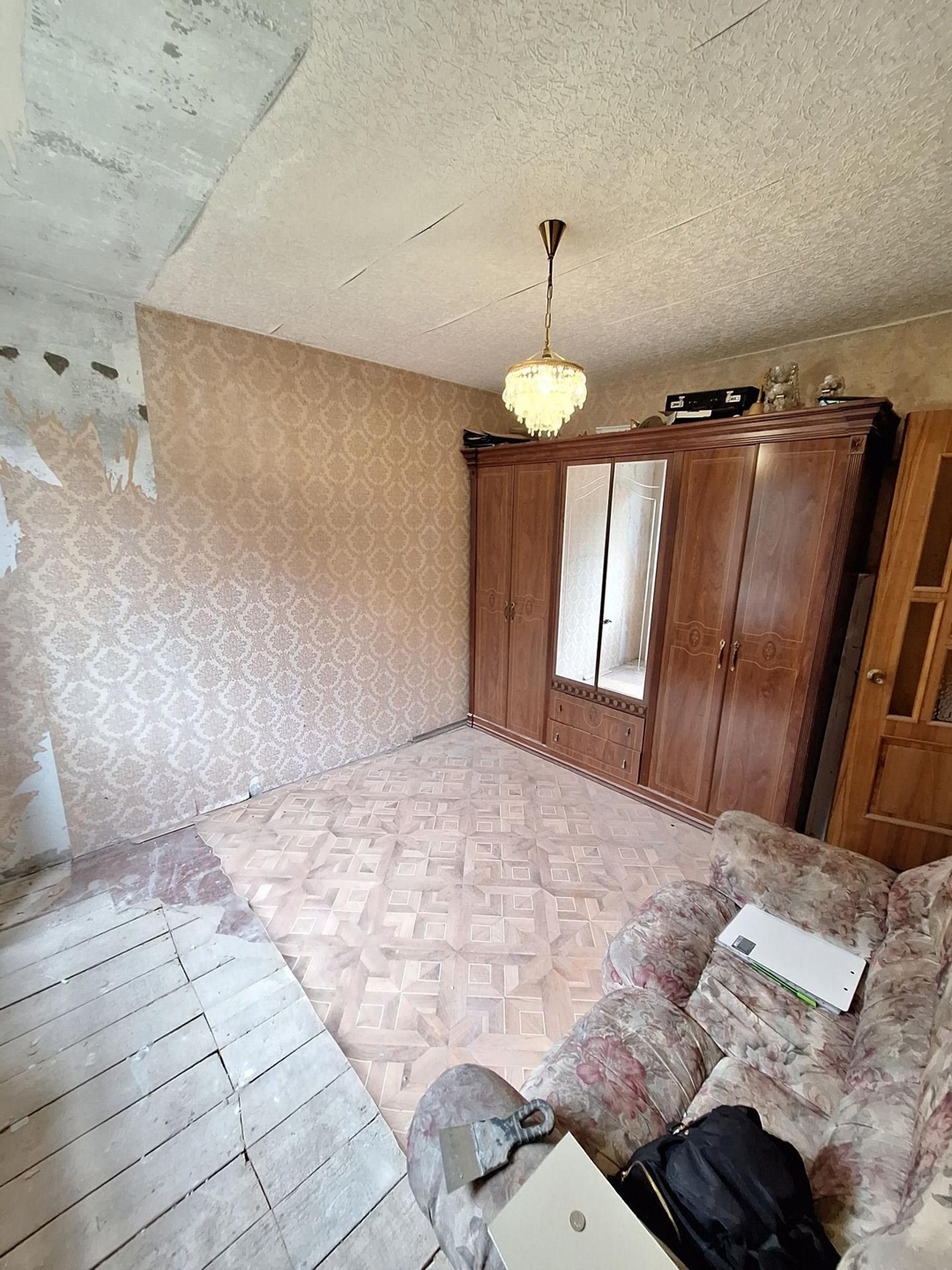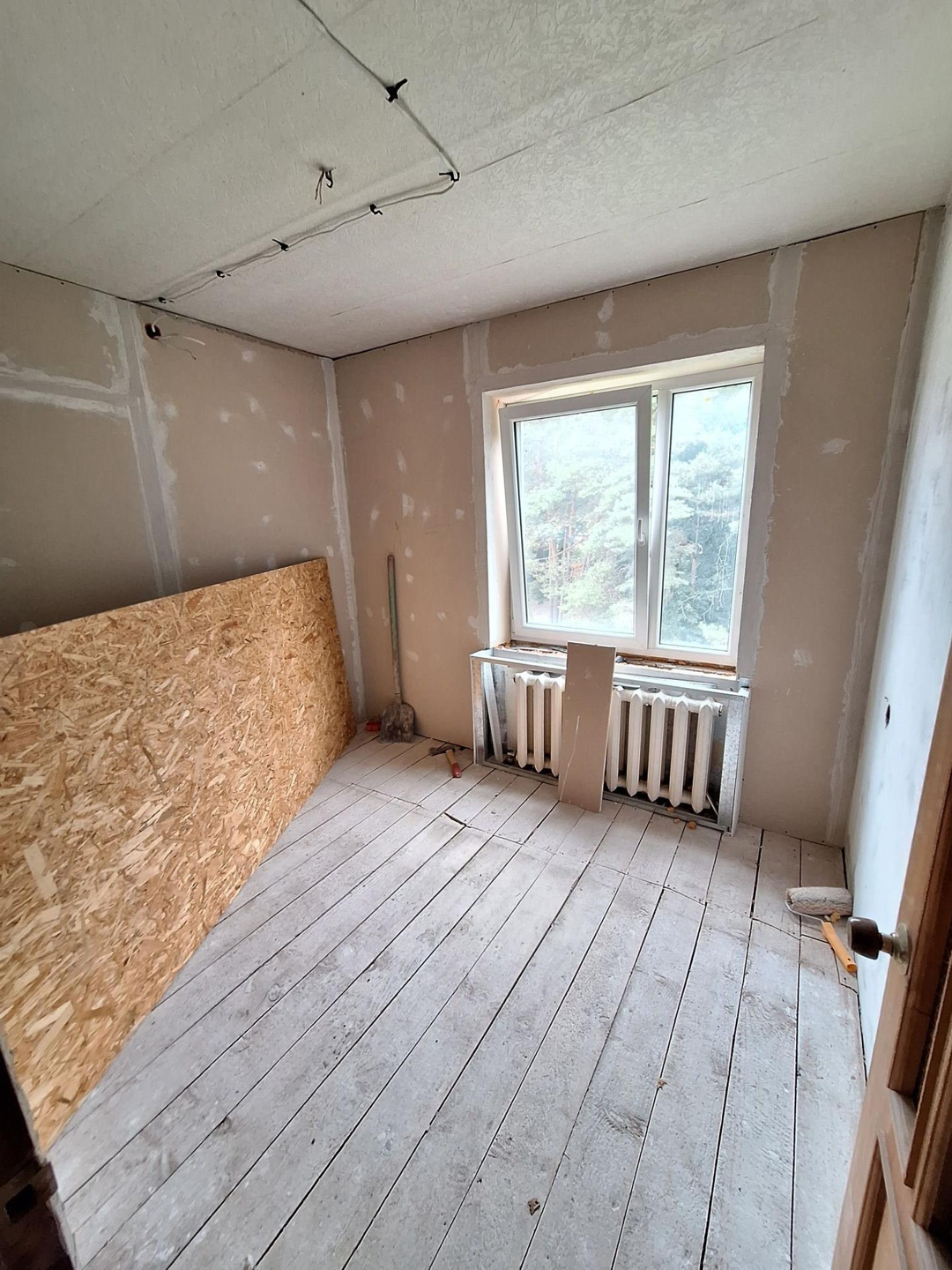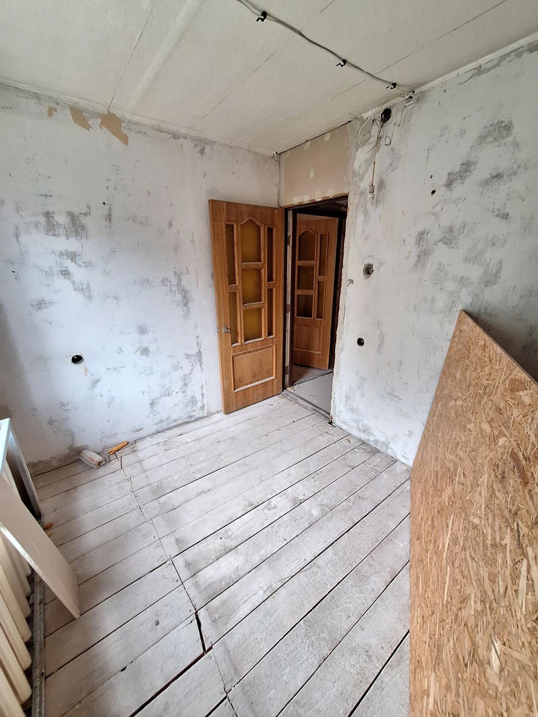 Требуется ремонт, но частично уже заменены: окна пластик, проводка, стены обшиты гипсокартон,  с/у уже в кафеле, установили новое: ванна,  унитаз,  водонагреватель.