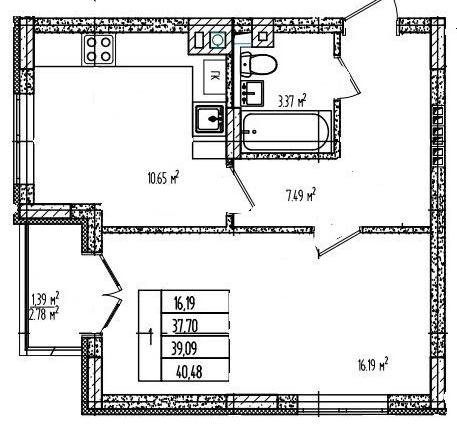 Общая площадь 40.48 м2