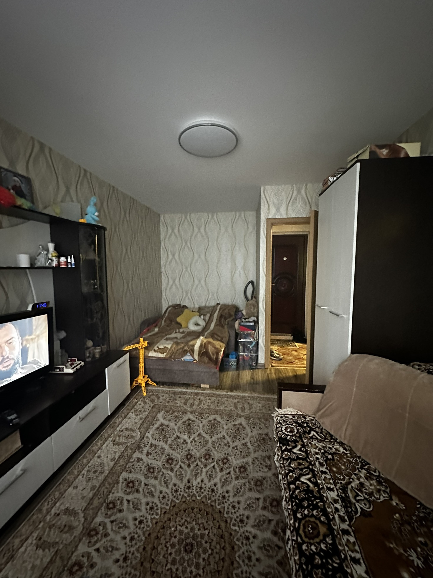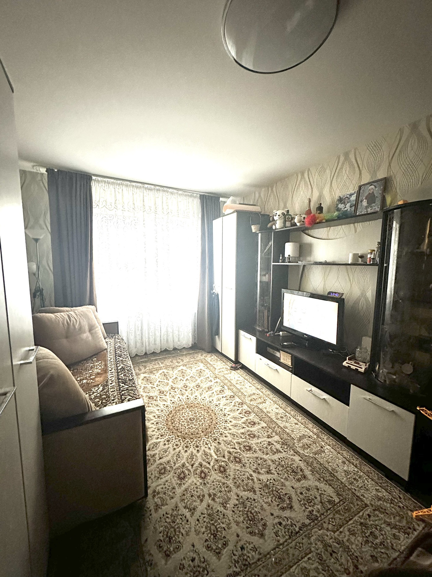 Из мебели остается стенка в спальне, на кухне кухонный гарнитур с варочный поверхностью.