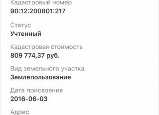 Продам участок сельхозназначения кад.номер 90:12:200801:1017 Есть ещё 0,8 га 90:12:200801:1016 Хороший подъездной путь .Все вопросы по телефону |