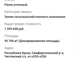 Продажа сельскохозяйственного хозяйства. Точный адрес: Республика Крым, Симферопольский р-н, Чистенский с/с, уч 293 Кадастровый номер: 90:12:200801:859 Цена договорная |
