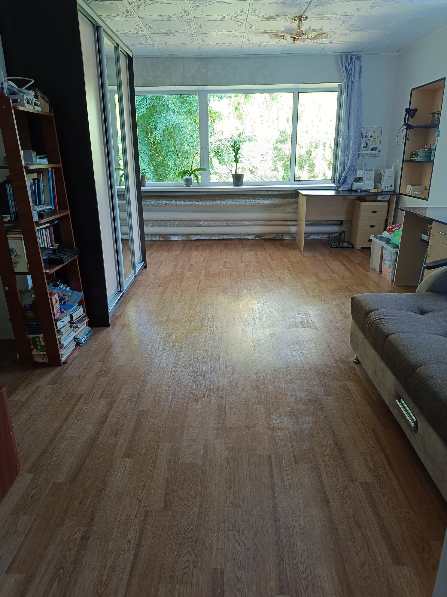 Окна пластиковые во всëм доме, в зале стены гипсокартон.