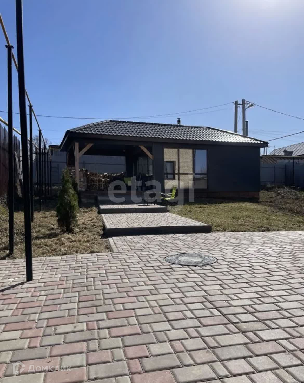 Парковочные места выложены из брусчатки, как и дорожки на участке.