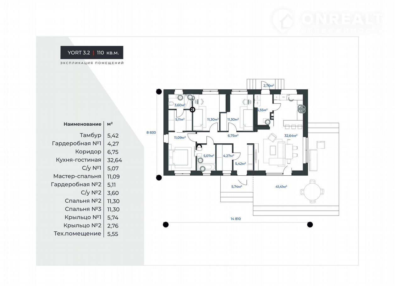 Общая площадь 110 м2