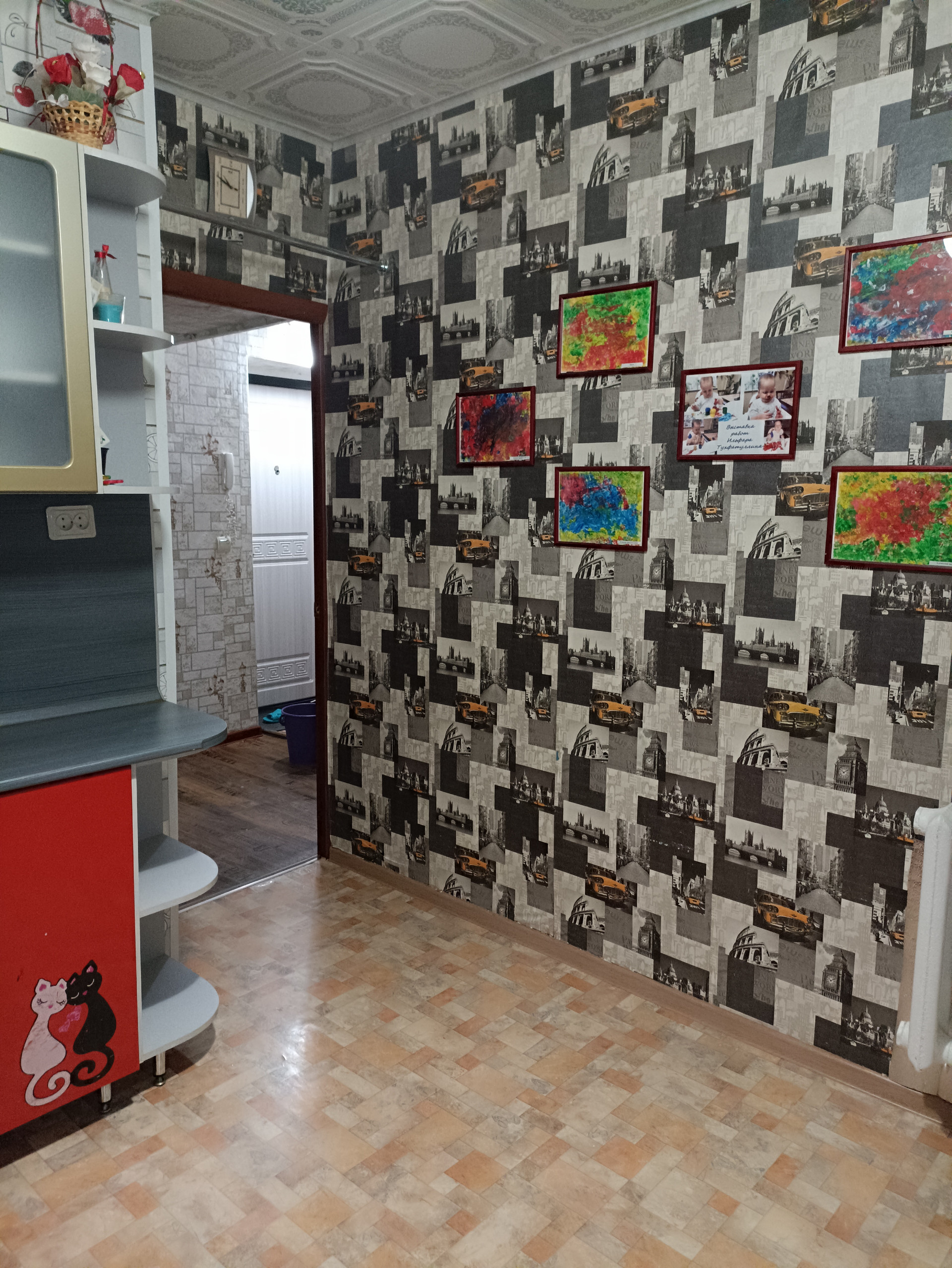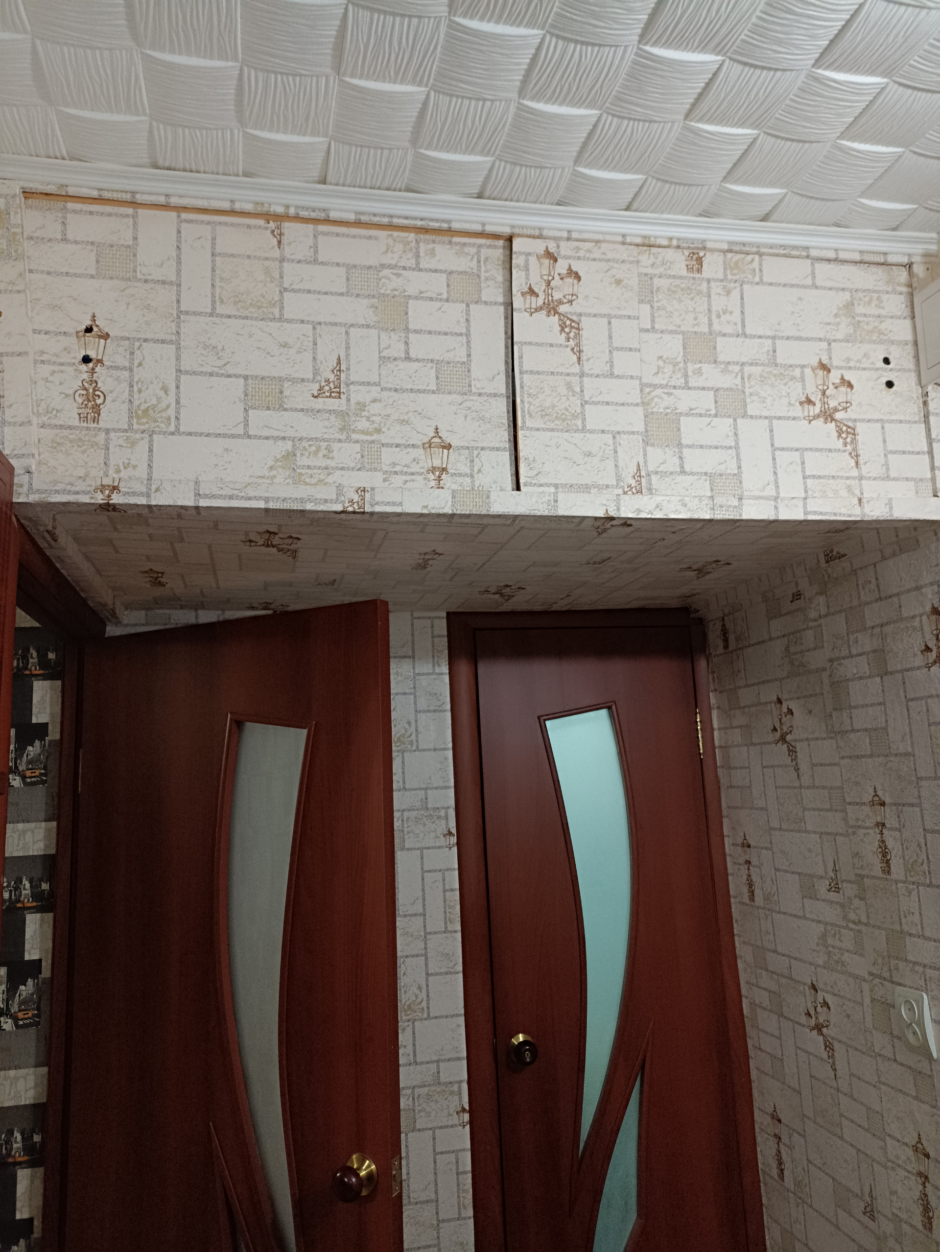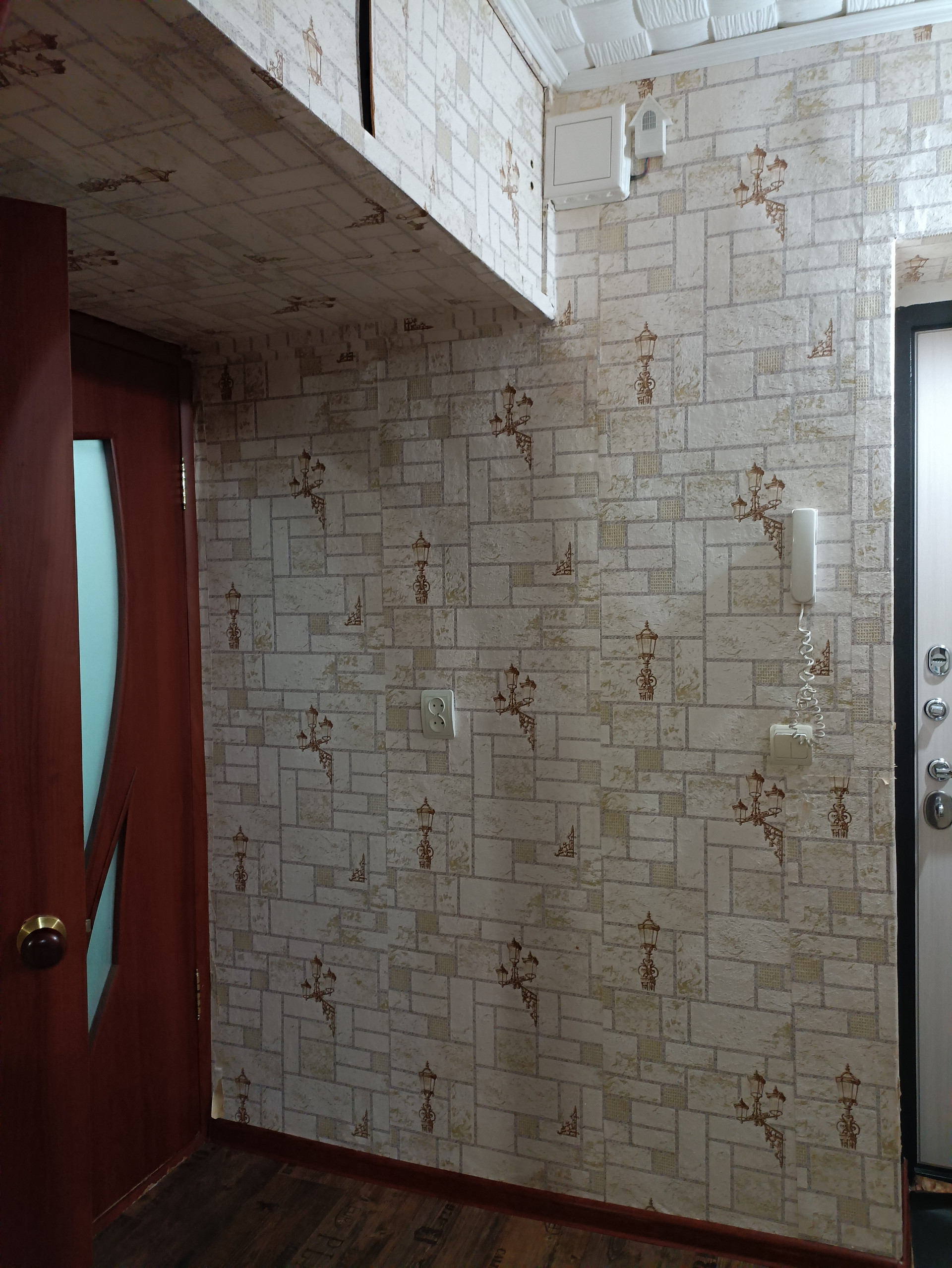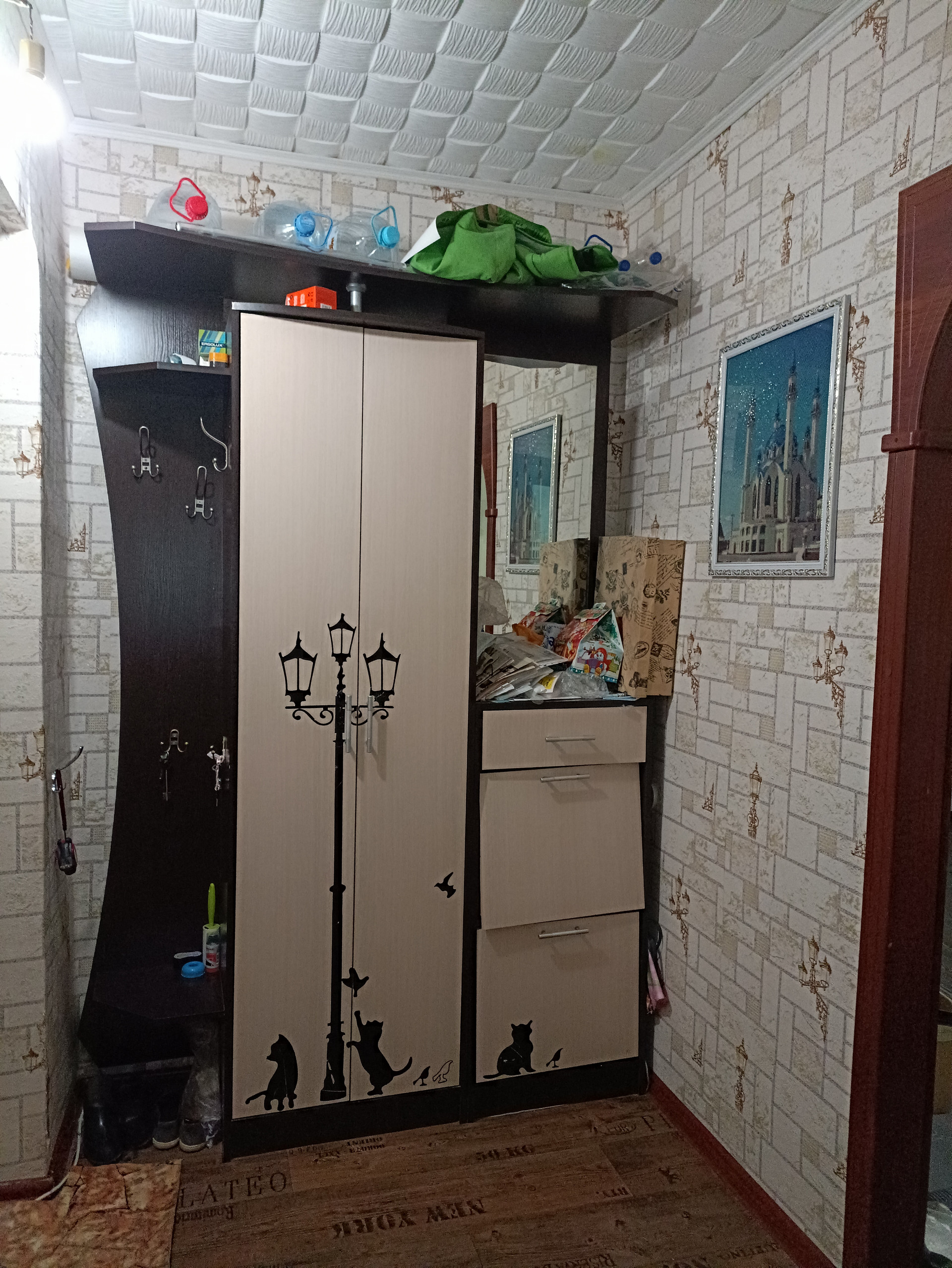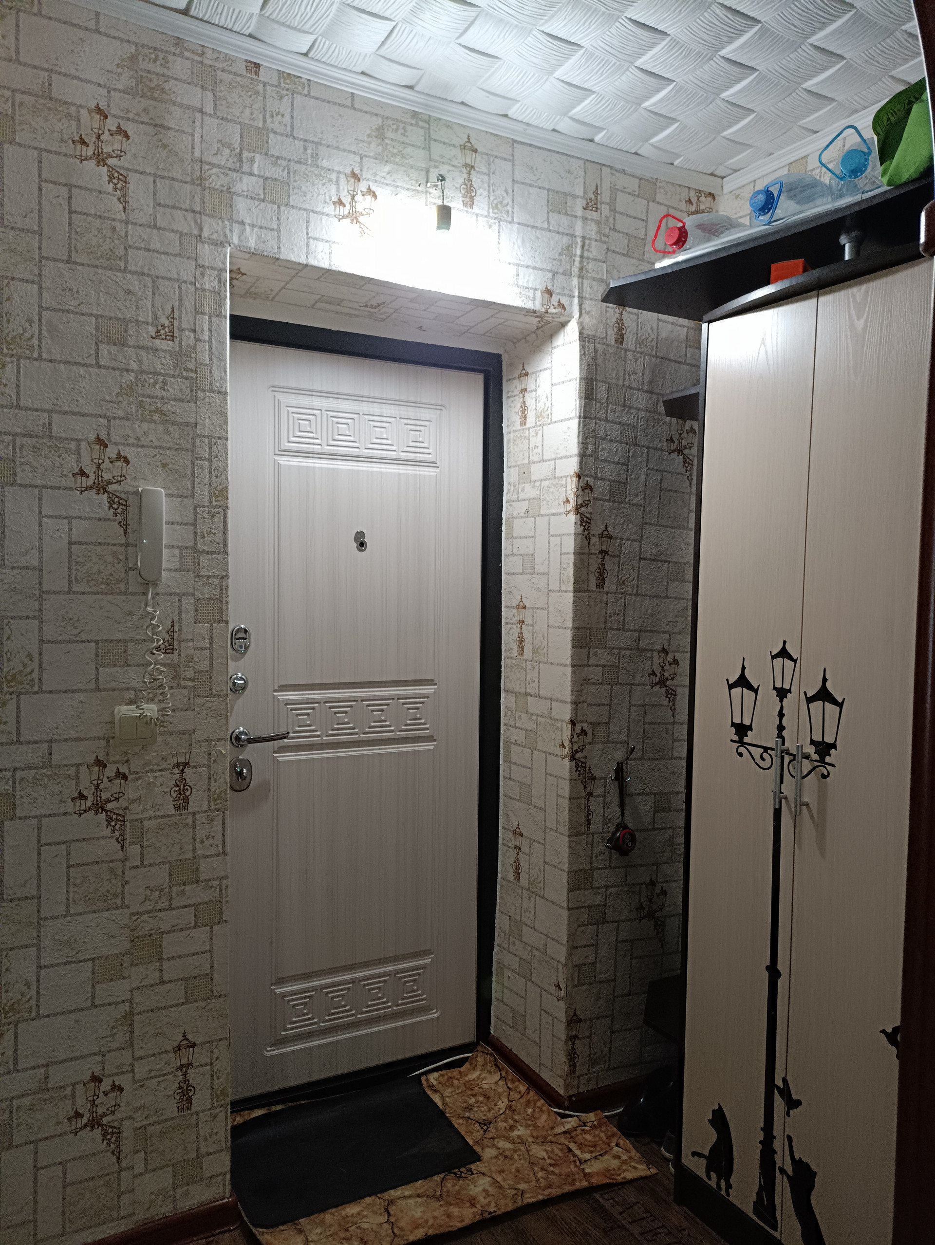 В прихожей хорошая входная дверь, есть удобная антресоль для хранения вещей.