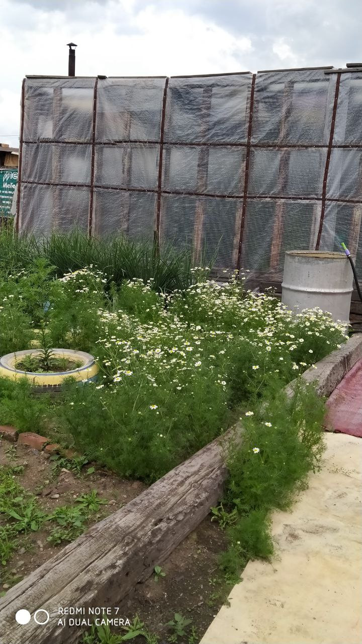 На участке: теплица, летний водопровод, насаждение смородины, куст сирени, дворовый туалет, летний душ, вольер для собаки, постройки.