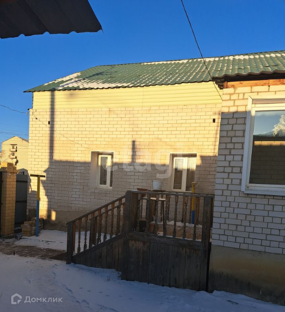 В Железнодорожном районе города продается кирпичный одноэтажный благоустроенный дом общей площадью 165,7 кв.м. с высоким цоколем. Материал стен:одна половина дома бревенчатая, а другая газобетон и всё облицовано силикатным кирпичом. Земельный участок 8,4 сот.