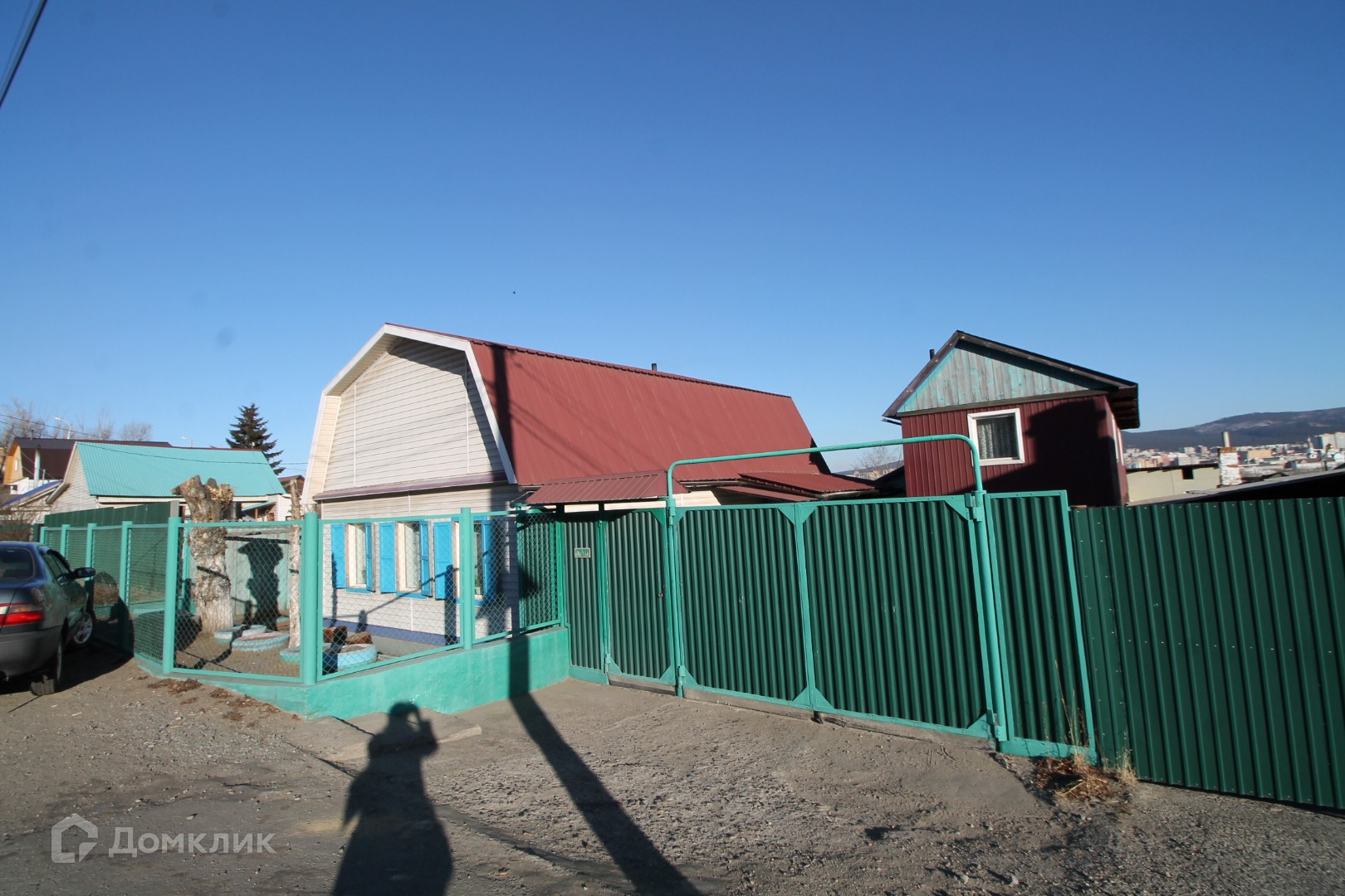 - Участок огорожен профлистом, есть теплый гараж с ямой, теплой комнатой на втором этаже, котельной, кухней.