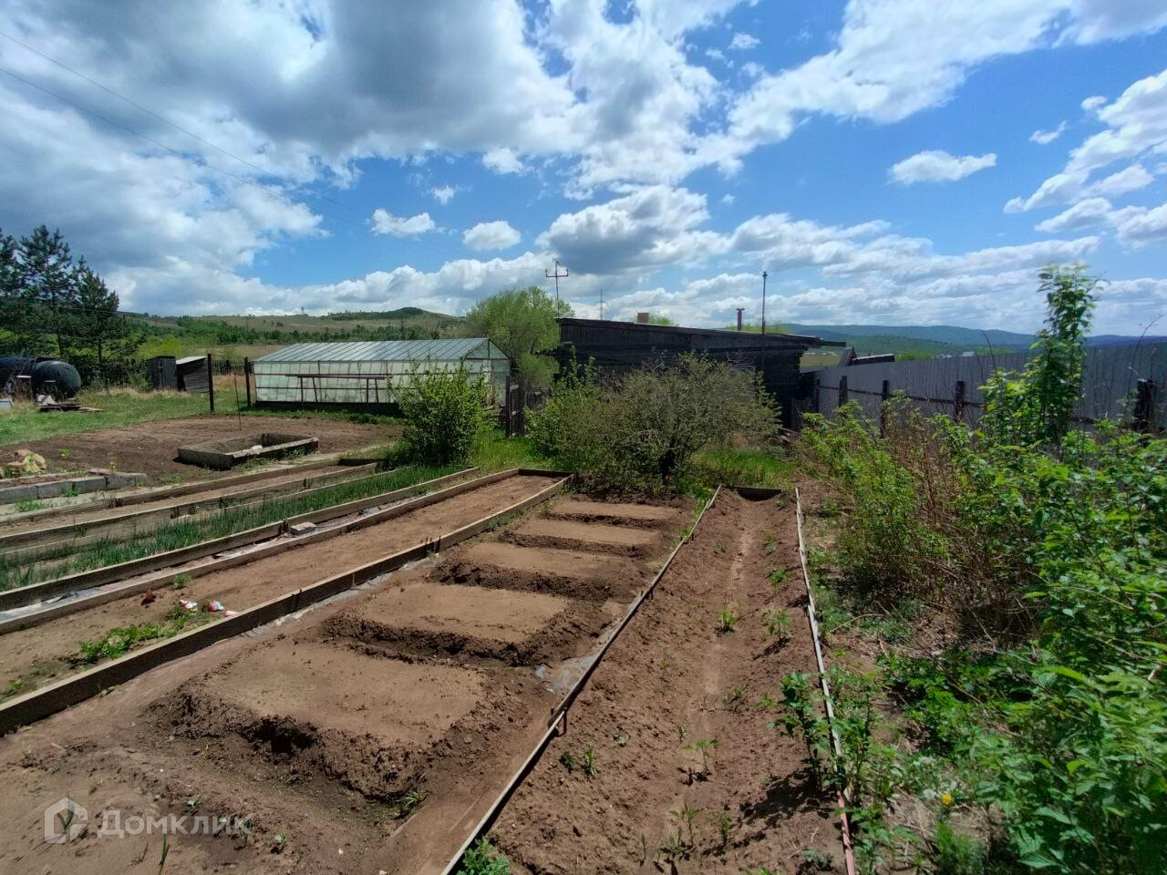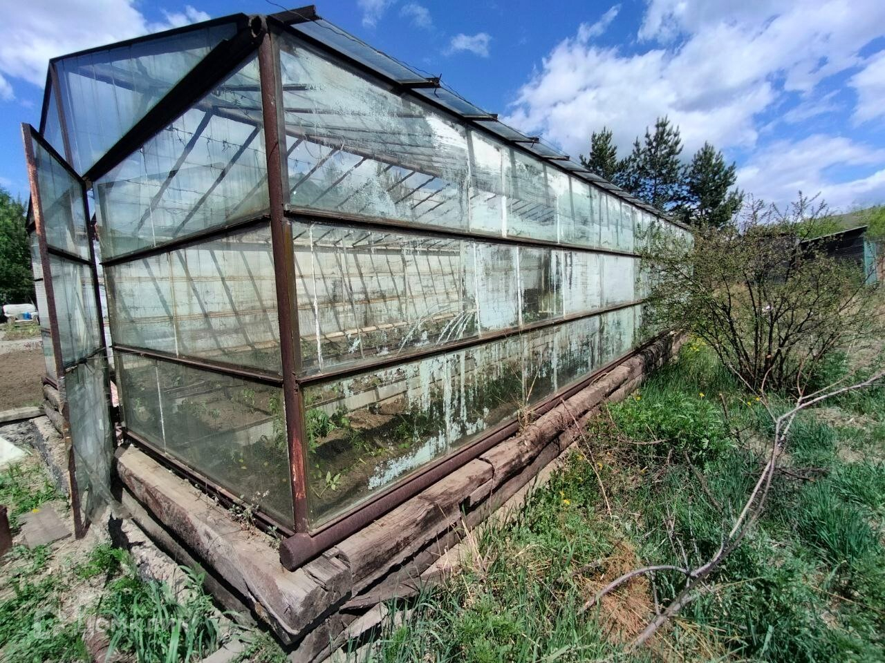 ##### 12 соток земельный участок, полностью разработан, имеются насаждения малины, смородины, вишни, сливы. Большая теплица 40кв.м. из стекла, парники.